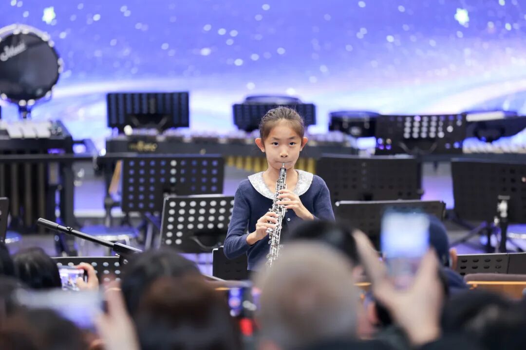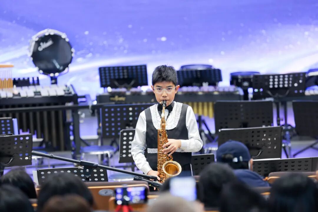 实验剧场成为管乐团同学们的主场。他们虽来自不同年级但形成一个天衣无缝的整体,展现了很高的专业素养与团队协作精神。每一个音符的吹奏、每一次节奏的把握,都经过了无数次刻苦练习。他们目光专注,身姿挺拔,随着指挥的节奏默契配合,用手中的乐器诉说着对音乐的热爱,展现出当代少年蓬勃向上的精神风貌。随着最后一个音符落下,全场观众起立鼓掌,掌声经久不息,表达着对这场精彩演出的高度赞誉。