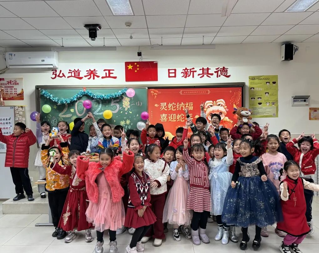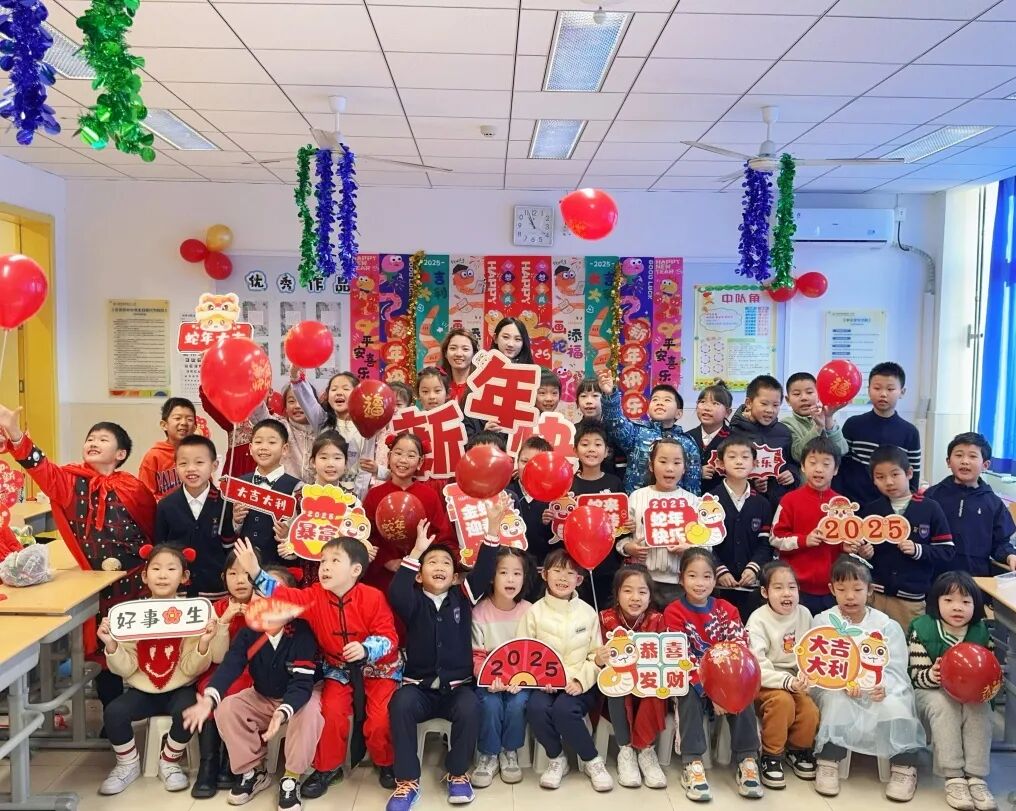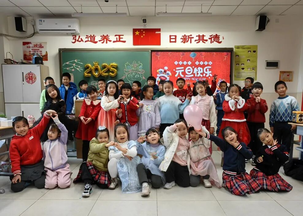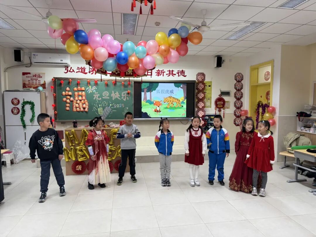 各班对此次元旦联欢投入了极大的热情,早在元旦前便紧锣密鼓地筹备起来。在家长志愿者的热心助力下,教室被装扮得年味四溢。五彩斑斓的气球、缤纷绚丽的彩带、寓意吉祥的窗花、精美的自制剪纸等装饰,让每一间教室都各具特色,或似梦幻童话世界,充满童真童趣,或满是艺术格调,洋溢着对新年的美好期许,彩带与拉花相互交织,勾勒出热烈欢快的节日氛围。