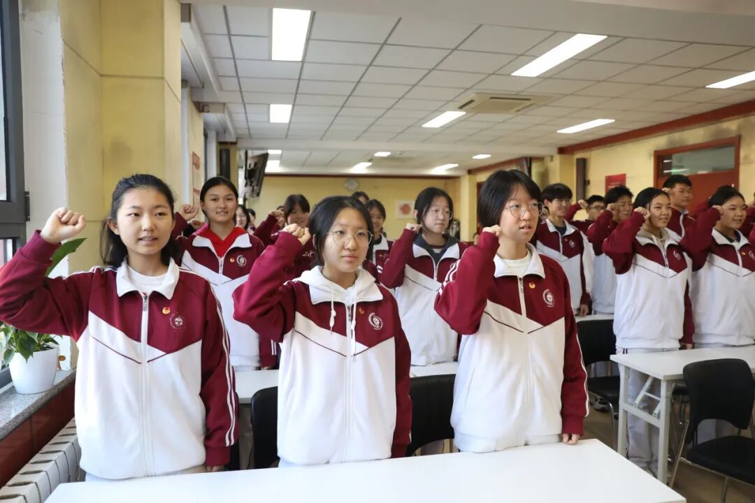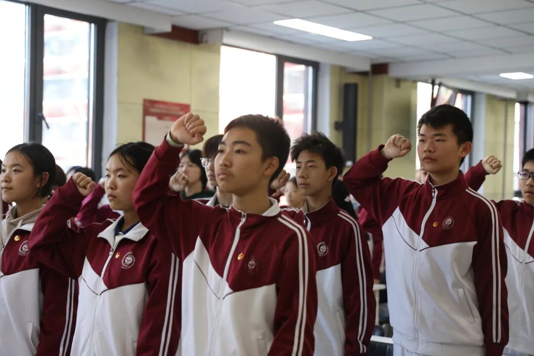 在团委书记的带领下,新团员面向团旗,举起右拳。誓言铮铮,如击鼓传声,是对组织的承诺,更是对历史的回应。