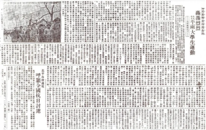 12月9日,北平学生“一二-九”抗日救亡运动爆发。