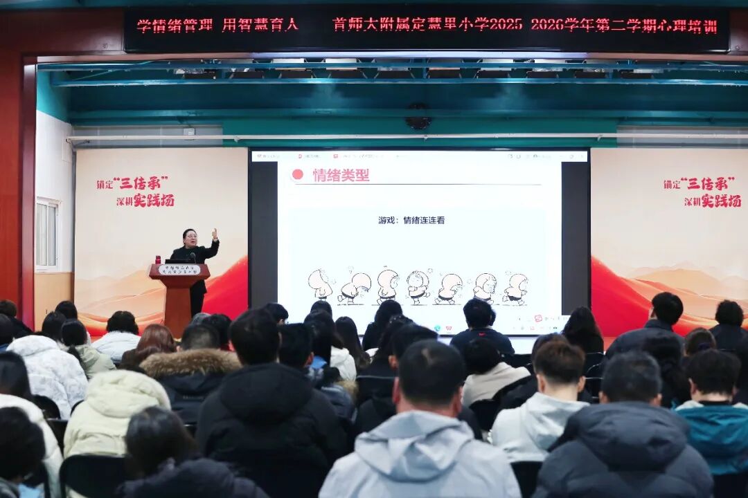 教育的本质是一棵树摇动另一棵树,一朵云推动另一朵云。为了进一步提升教师心理健康教育水平,增强教师应对压力与情绪管理的能力,学校特邀中国科学院心理研究所应用心理学博士、国家二级心理咨询师徐媛媛为全体教师带来了“学情绪管理 用智慧育人”主题心理培训。