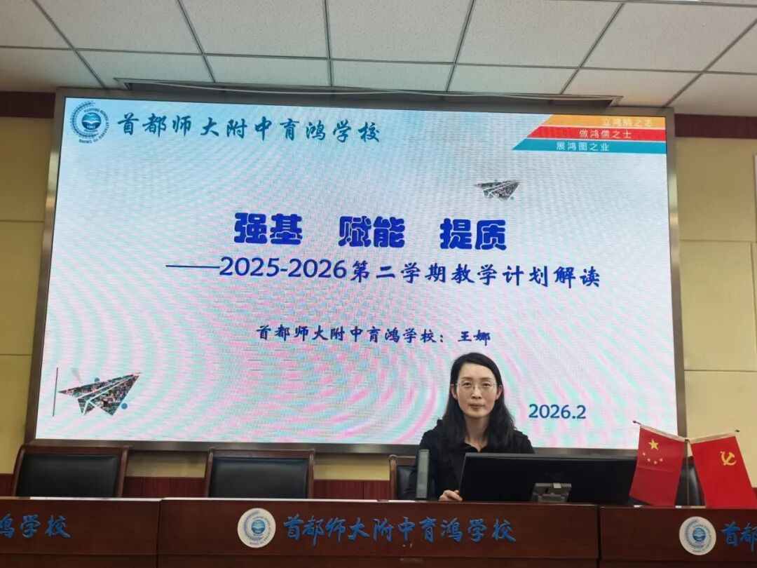 她在26日的行政会上,回顾过去一年教师团队在教学竞赛、课题研究中的累累硕果,展望2026,学校将以“鸿翼”党建为引领,以质量提升为主线,以课堂改革为动力,以人工智能赋能教育为牵引,构建全学段高质量育人体系。