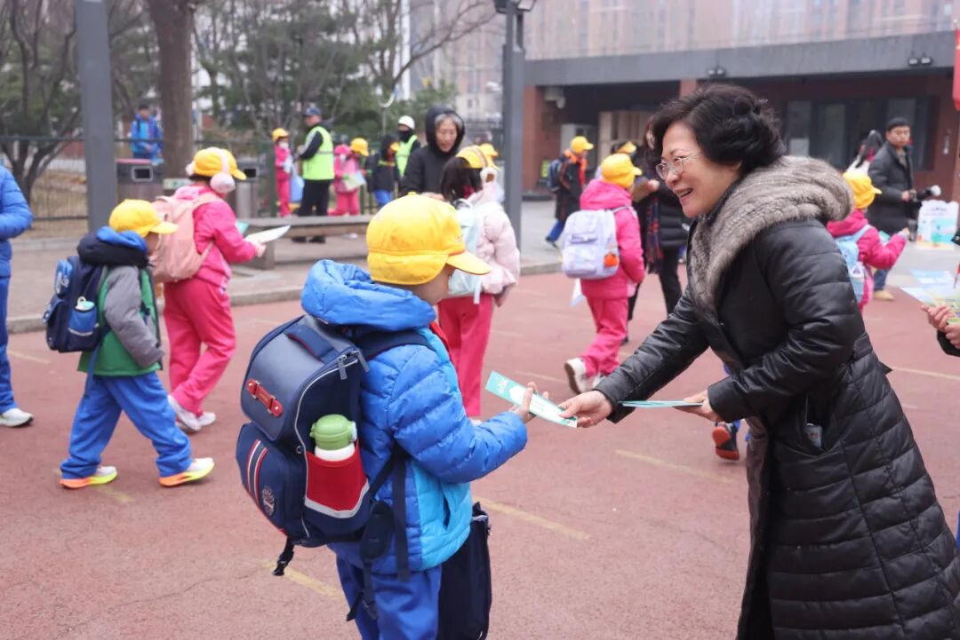 校园里红灯高挂,灯谜长廊氛围感拉满!学校领导、老师携手智能机器人在校门口暖心迎娃,同学们入校即可抽取专属健康卡和趣味灯谜卡,一面是健康倡议暖心祝福,一面是传统文化猜灯谜迎新春。同学们猜灯谜、领惊喜,树理念、强体魄,欢声笑语间,新学期从健康快乐正式开启。