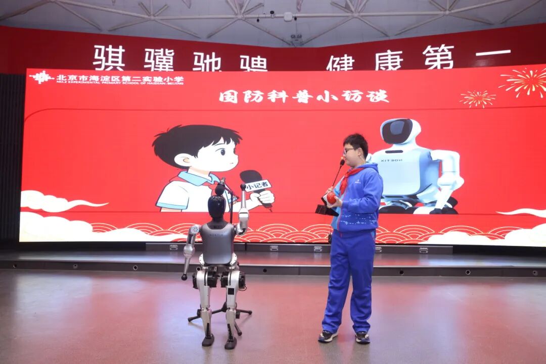 武术队员与机器人同台演绎《红色征途・武动山河》,传统武术的刚劲与人工智能的科技感完美融合,一招一式尽显海淀实验二小学子的昂扬风采,以强健体魄展现少年朝气,瞬间点燃全场热情。