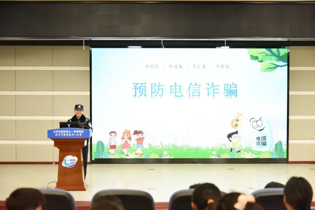 活动现场,侯警官以“预防电信诈骗”为主题,结合少年儿童的生活实际,以生动的口语化讲解为同学们筑起了一道安全防线。