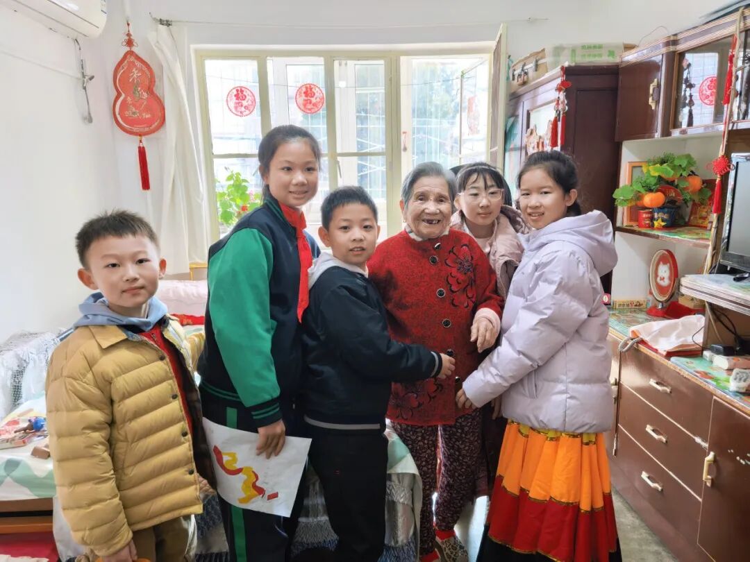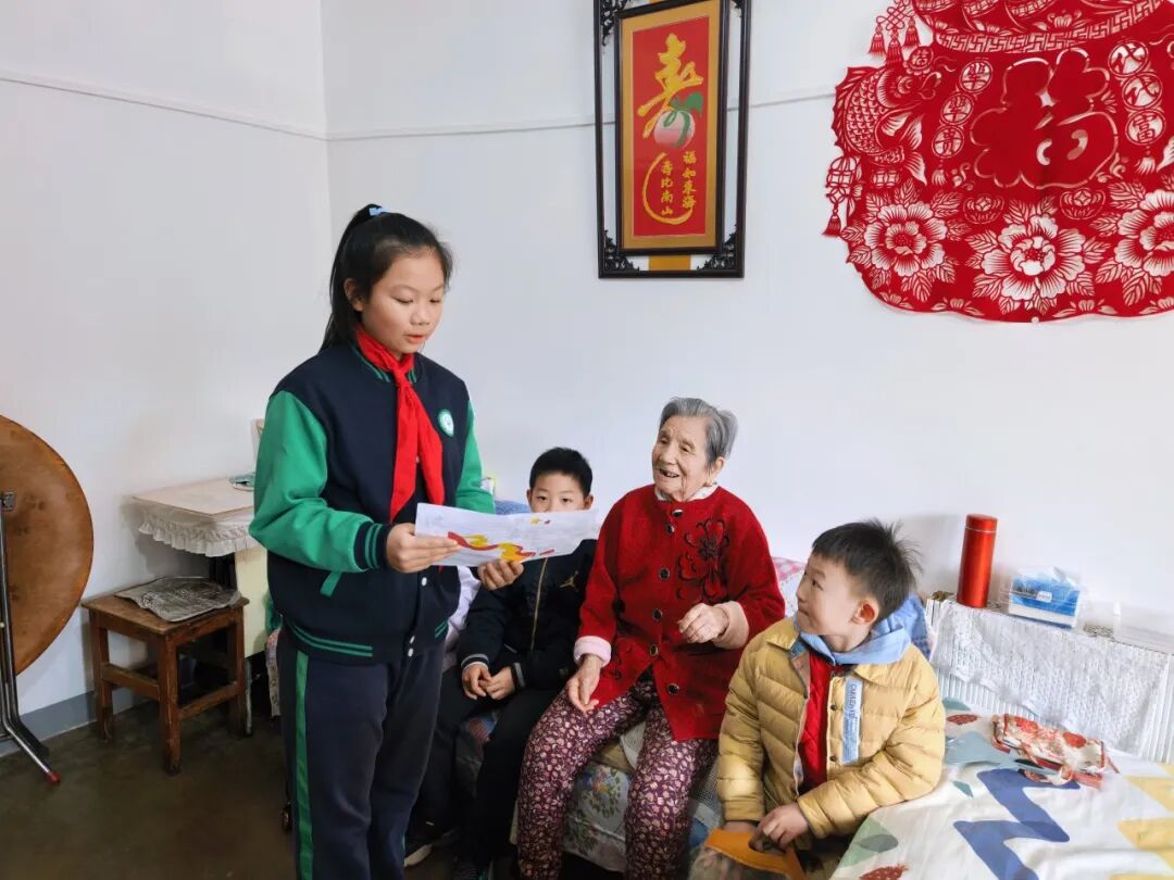 三2中队“星慧中队”的队员们前往社区孤寡老人家中,陪老人聊天、整理房间,用舞蹈和乐器演奏为他们带去欢乐,用爱心传递着浓浓的温情。