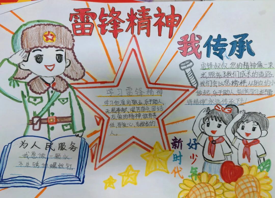 队员们拿起手中的笔,用工整的书法、灵动的图画,一笔一画诉说着心中的赞美。他们把最真挚的敬意与感谢,藏在每一个笔画、每一幅作品里,用童真的方式向雷锋致敬。