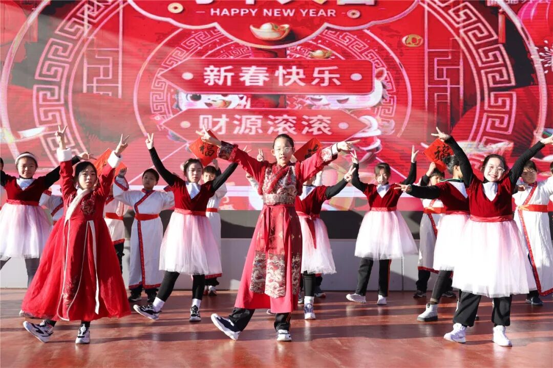 活力四射的舞蹈《福气要来到》更是点燃全场,同学们用灵动的舞姿展现少年朝气,传递着对新年的美好祝愿。