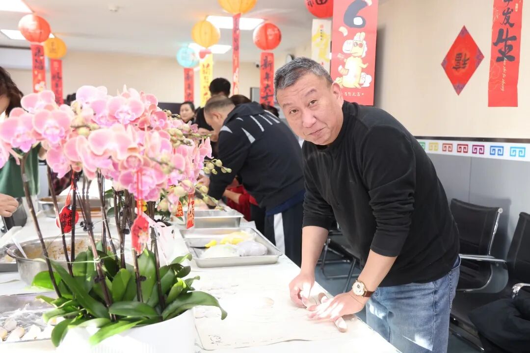 压轴登场的是最具年味的“包饺子”环节。大家围在一起,和面、擀皮、调馅、捏合,动作娴熟又充满乐趣。形态各异的饺子寄托着对新年的美好期盼,也包裹着同事间暖暖的情谊。这不仅是传统文化的体验,更是“家”一般的温暖凝聚。