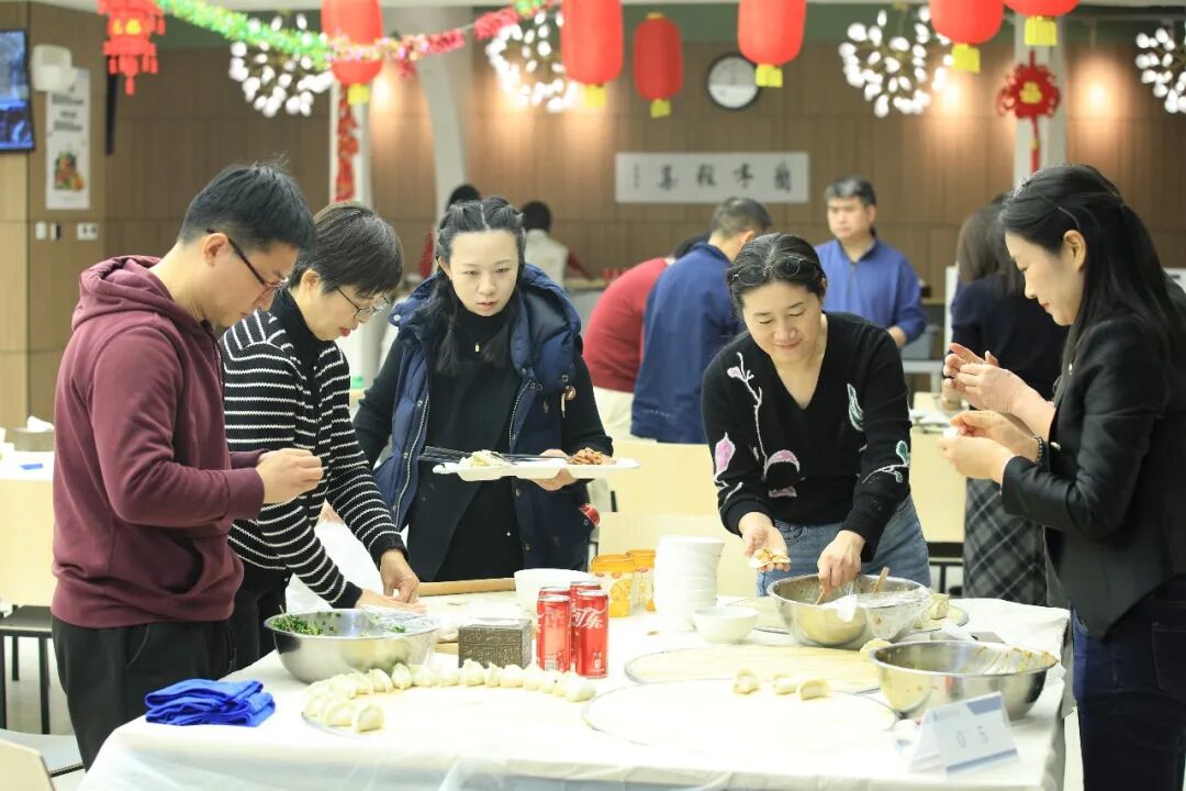 文艺联欢结束后,“迎新年·包饺子”活动在食堂温馨开启。大家围坐一起,揉面、擀皮、包馅,默契协作中分享着家常与祝福。当热气腾腾的饺子出锅时,满屋生香,这最简单也最幸福的味道,承载着对新年美好的期盼。窗外冬意正浓,屋内暖意融融,“进修一家亲”的温情画面在此刻定格。