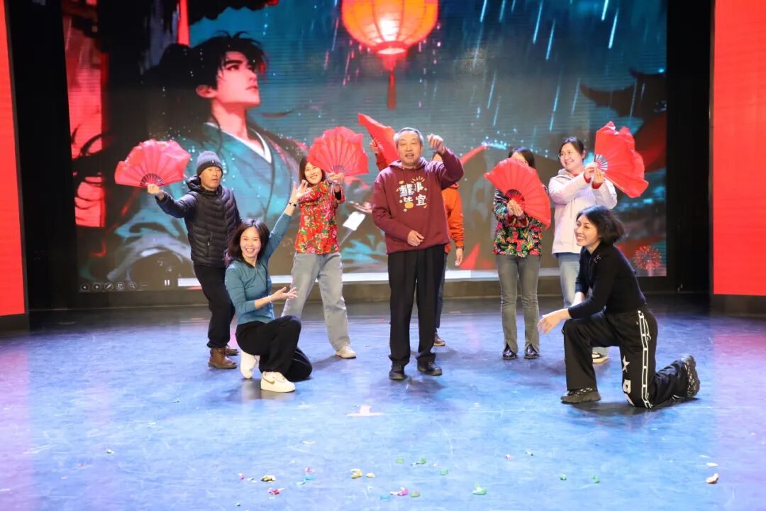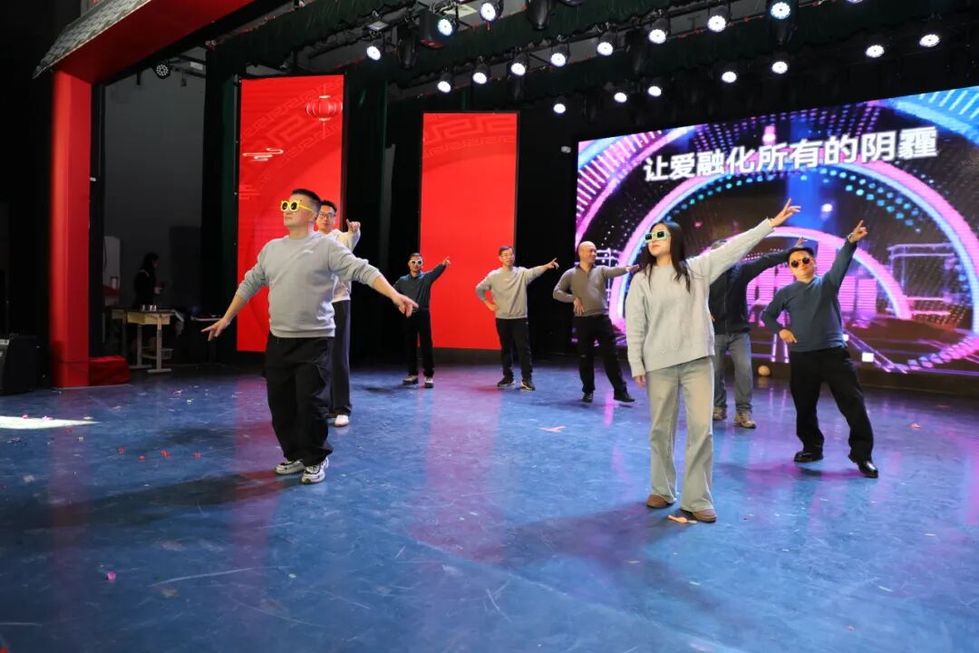 联欢会在温馨与期待中拉开帷幕。一段由老师们亲自“出演”的趣味语录视频率先点亮全场,熟悉的场景与幽默的话语引发了阵阵共鸣与欢笑。视频的尾声,动态引出由青年教师带来的开场节目《教师Disco》,跃动的节拍瞬间点燃了现场的热情,展现了青年教师的青春活力。