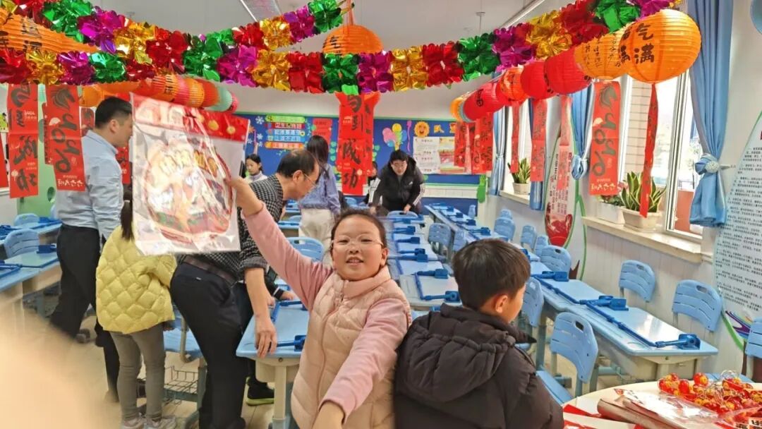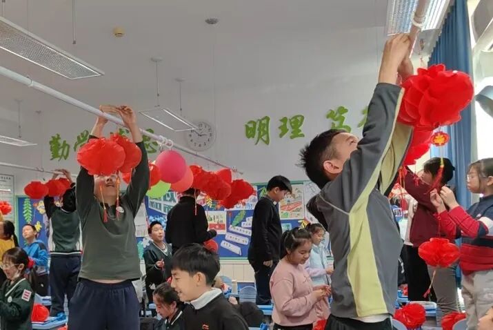 灿灿彩饰满校园,华彩盈堂“盼”新年。贴窗花、挂灯笼、拉彩旗、摆鲜花……老师、学生和家长们携手合作,精心装点教室,让校园的每一处角落都披上节日的盛装,那一抹抹鲜艳的色彩,满是对新年万象更新的热切期盼,“年”韵悠悠!