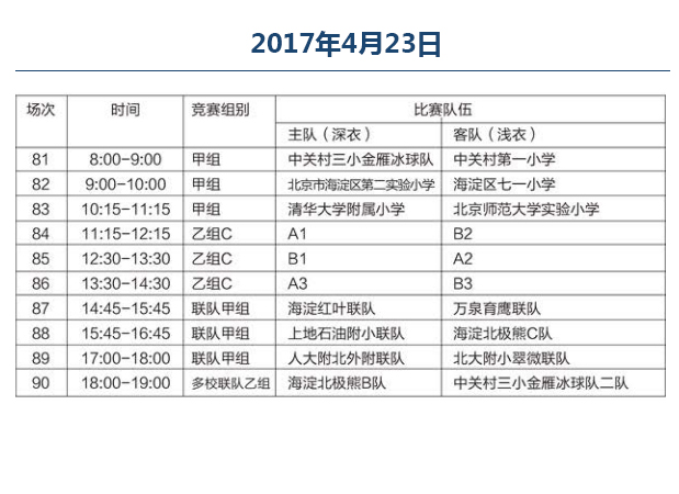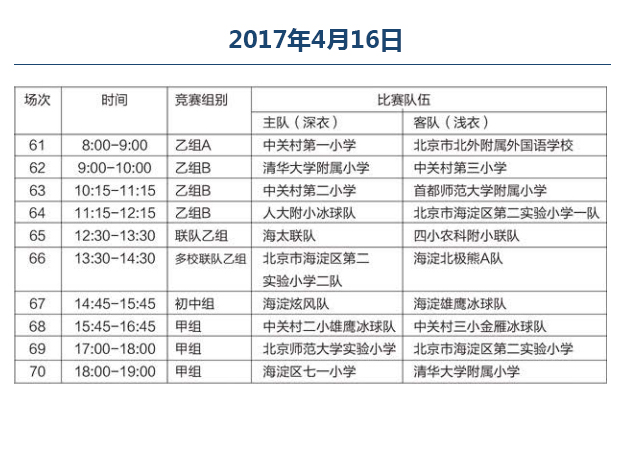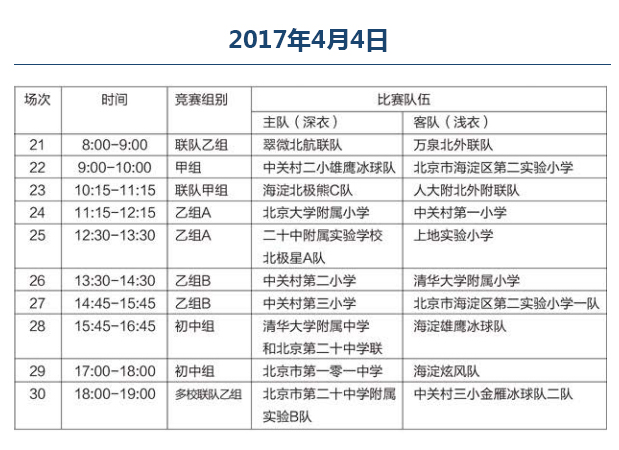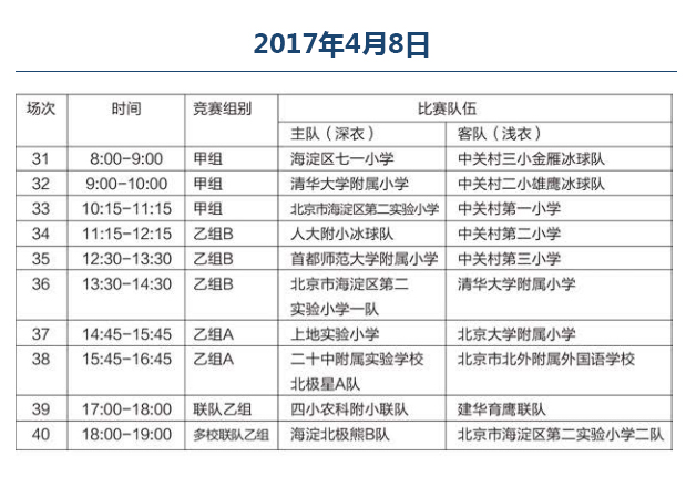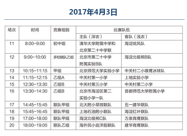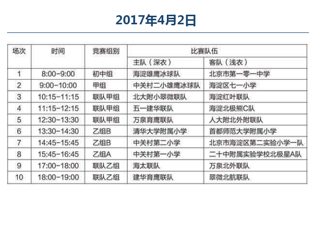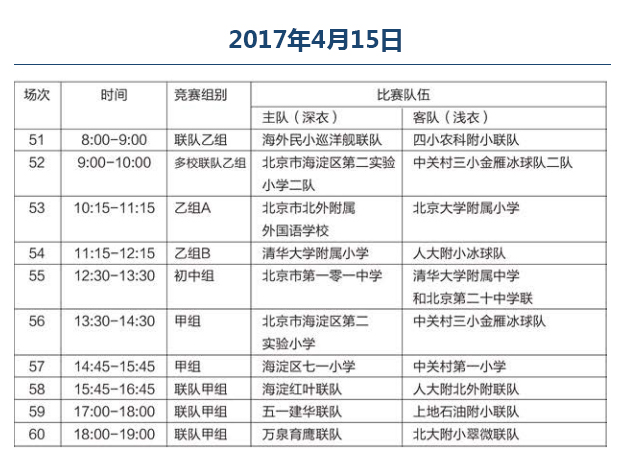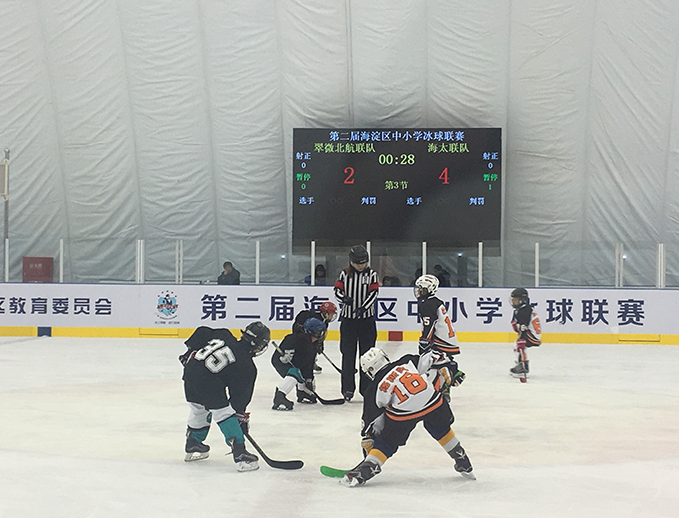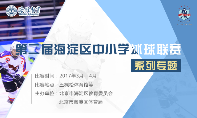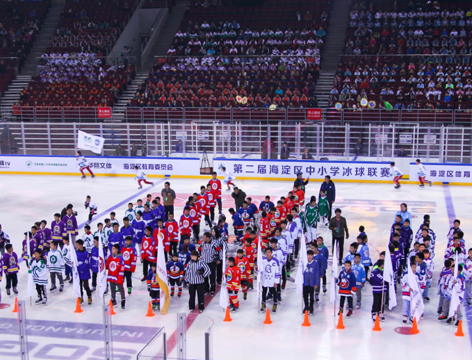 海淀区教委于2017年3月19日在五棵松体育馆举办第二届海淀区中小学冰球联赛开幕式,共有海淀区60所中小学校,40支队伍,520余名球员,参加小学甲组(4—6年级)、小学乙组(1—3年级)、初中组(7—9年级)三个级别的120余场比赛。希望通过这届冰球联赛,带动更多的学校参与冰球运动,磨练学生意志品质,培养团队精神和集体荣誉感,建立规则意识、拼搏观念,增强自信心、进取心和责任感,让更多学生喜欢上冰球运动。完善冰球运动课程和竞赛体系,打造海淀区中小学冰雪运动特色品牌。