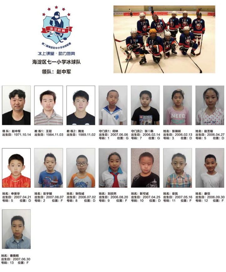 > 海淀区七一小学冰球队