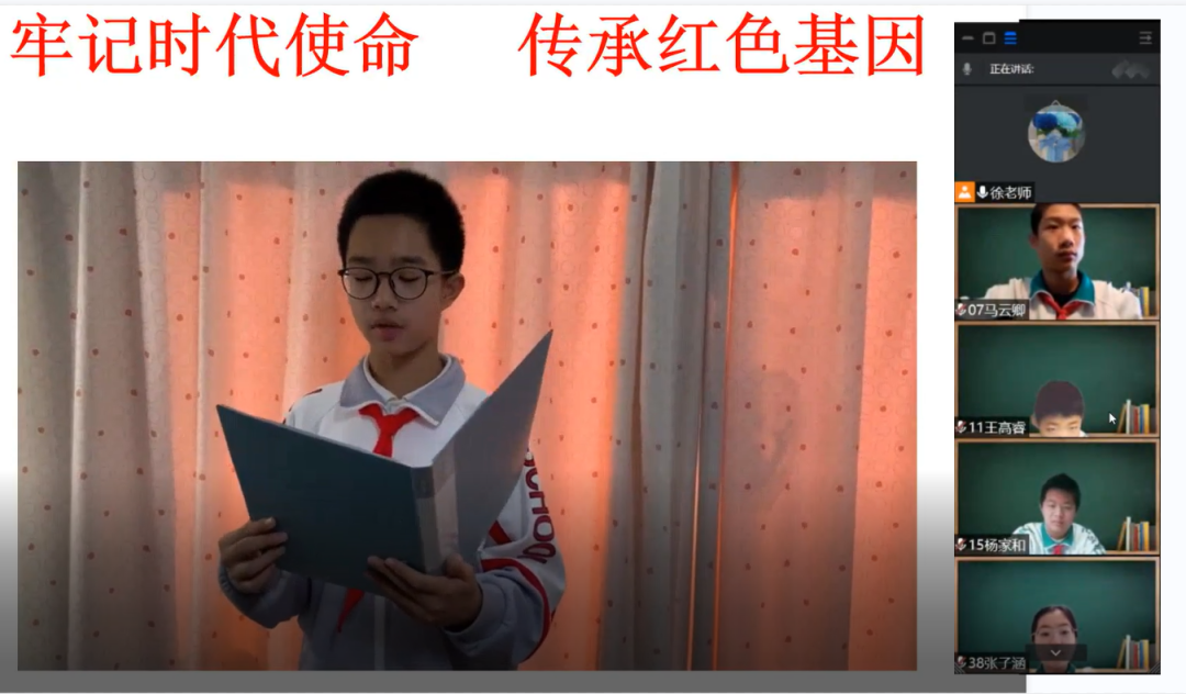同学们在云端相聚,举行线上升旗仪式。回顾那场声势浩大的爱国运动,更加体会到祖国的和平盛世来之不易。当五星红旗冉冉升起,当国歌奏响,那份自豪感油然而生。