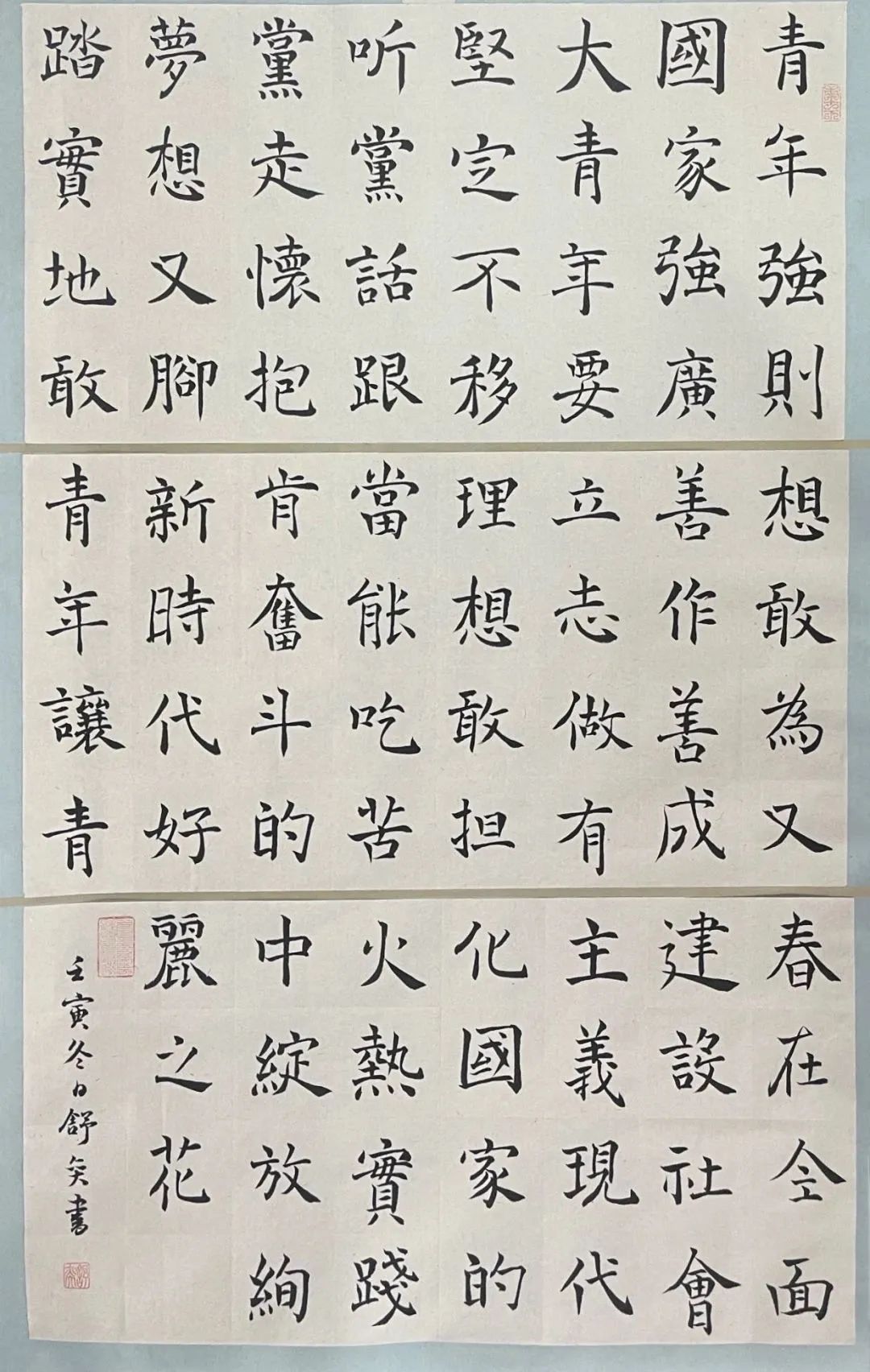 同学们用书法和绘画的形式抒发对英雄的崇敬之情,对党和祖国的热爱之情。立志青春,逐梦未来。