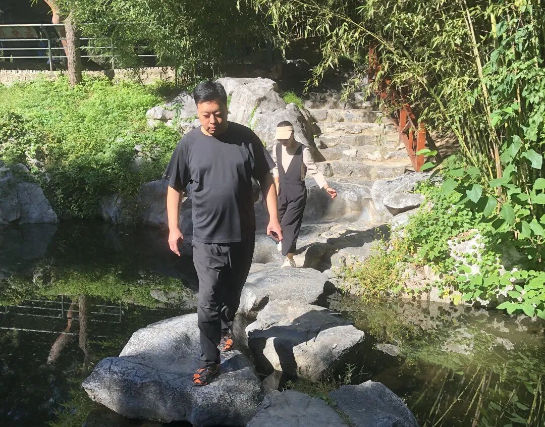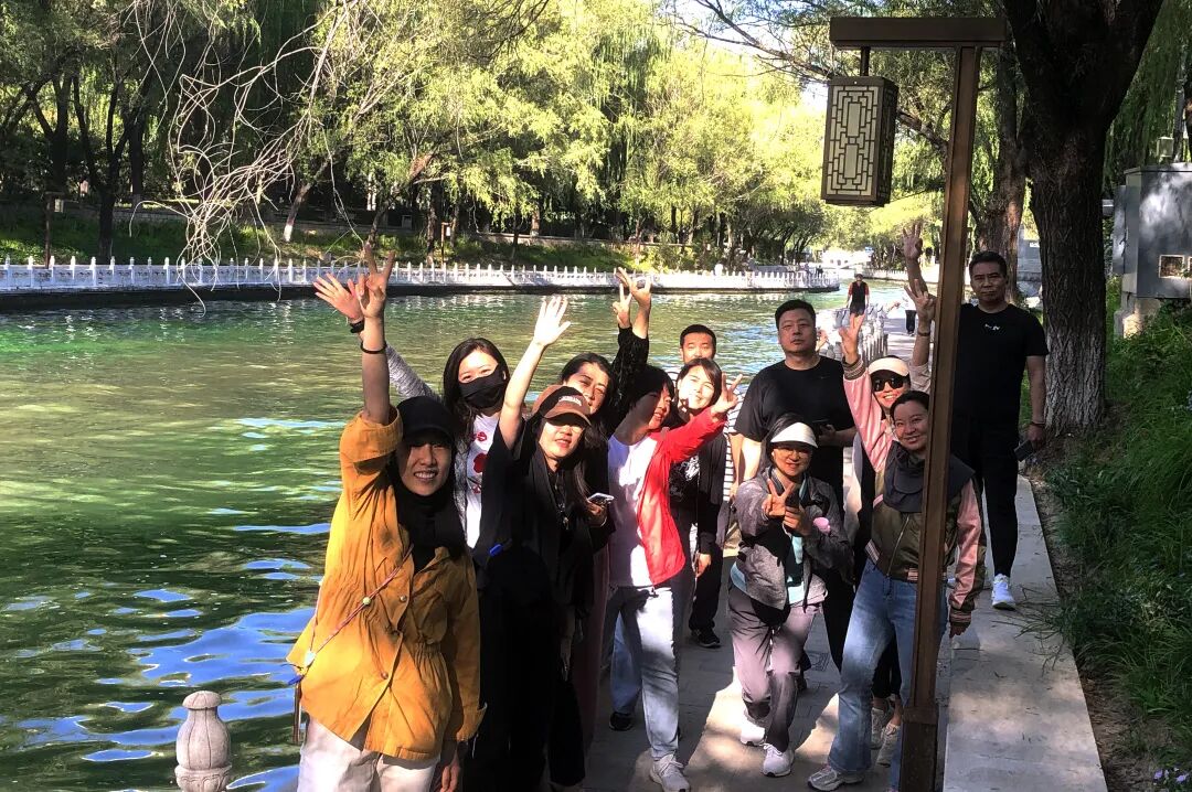 秋风送爽,花木飘香,初秋的天空碧蓝如洗。全体教职工从学区出发,沿着长河河畔行至紫竹院公园。