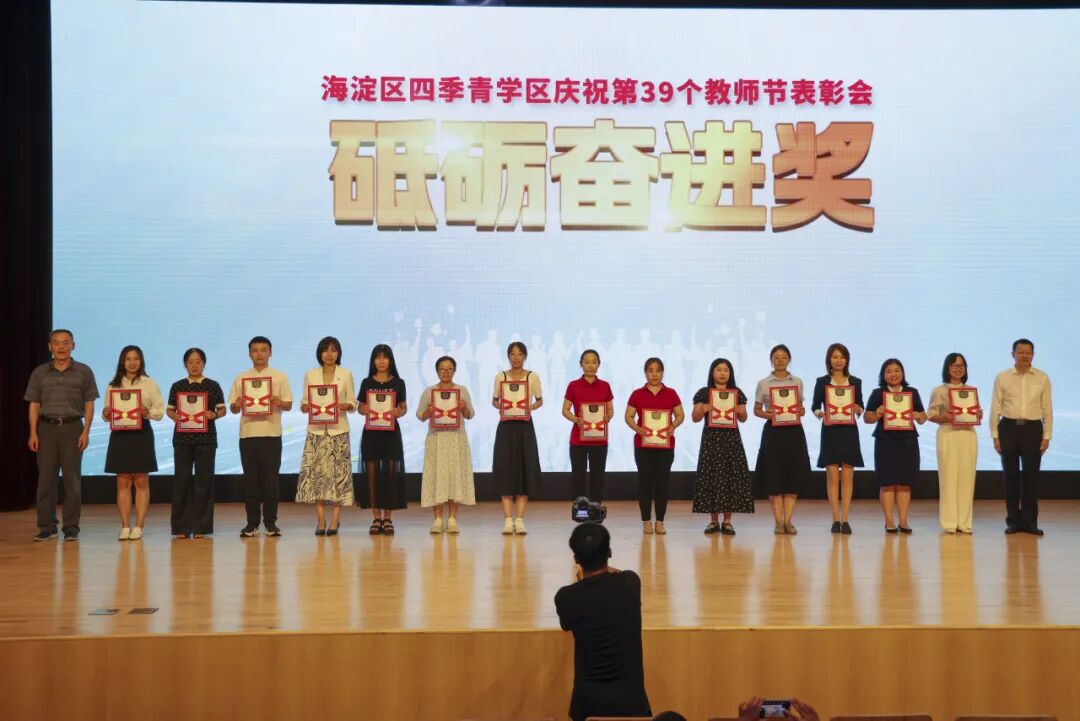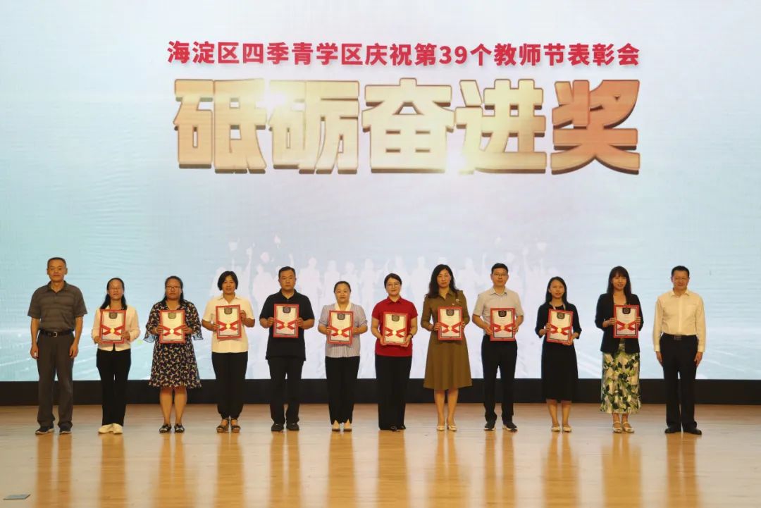 9月5日,海淀区四季青学区管理中心举办庆祝第39个教师节表彰活动,学区教育精英共同瞄准“办好人民满意的教育”这一目标,聚心、聚智、聚力,发挥榜样引领带动作用,推动四季青地区教育优质均衡发展。活动以“党建引领促发展 颂师铸魂向未来”为主题,是四季青学区首次在学区层面举办的庆祝表彰活动。