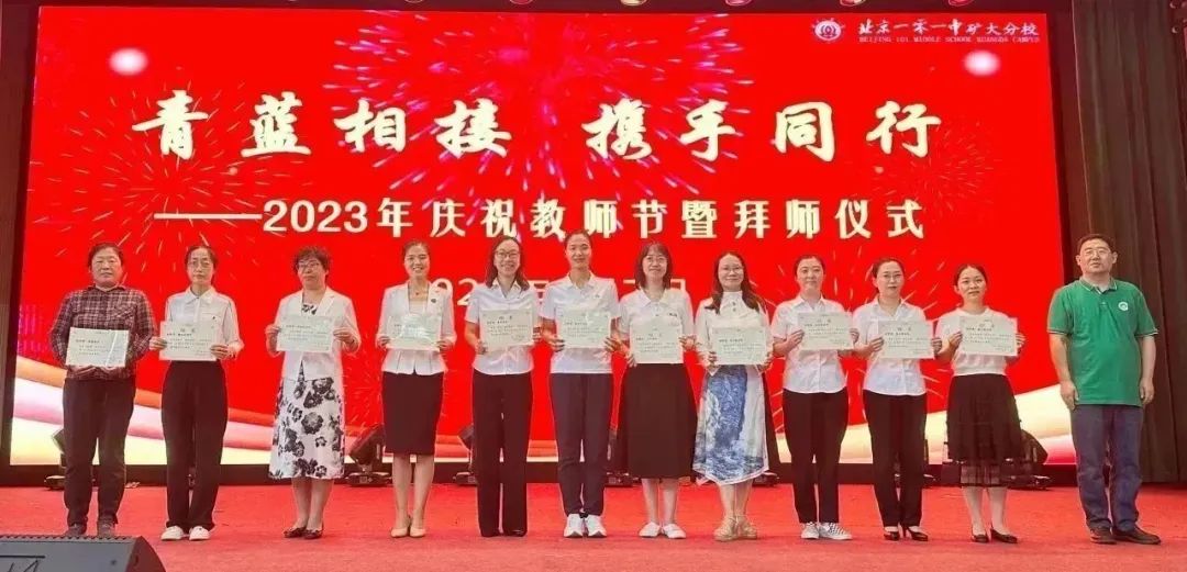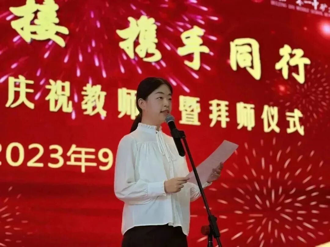 青年教师是学校的未来和希望,为了充分发挥学校骨干教师的示范引领作用,切实提高青年教师的教育教学水平,建设师德高尚、专业过硬的教师队伍,促进青年教师快速成长,促进全体教师共同发展、共同进步、共同提高。2023年9月7日,在第39个教师节来临之际,北京一零一中矿大分校全体教师在树蕙学堂举行“青蓝相接 携手同行——庆祝教师节暨青年教师拜师仪式”。活动由学校党总支副书记张国富主持,行政干部和全校教师参加了此次活动。