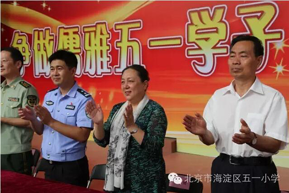 2016年9月1日,五一小学全体师生齐聚一堂,举行以“争做儒雅五一学子,共建文明幸福家园”为主题的开学典礼,共同庆祝新学年的到来。前来参加开学典礼的嘉宾有:万寿路街道党工委副书记杨毅、中国测绘科学研究院纪检书记顾忠良、永定路派出所所长樊阳、副所长赵刚、田村派出所所长李迎宾、武警总医院政治部副主任张军立、中国新兴集团总公司工会主席李荣军、田村街道文教科科长温海红、万寿路学区管理中心副主任王大海、永定路学区管理中心徐平正主任。