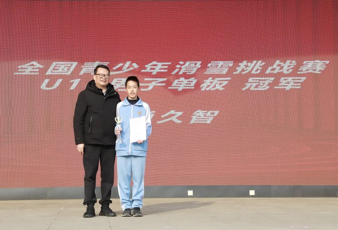 在北外附校,活跃着一批志愿者,他们积极参与校内、校外各项志愿活动。左益宁、益安来、刘静怡、韩世儒、张馨玥、张志童、安晋辉、姜柯宇同学获得北外附校2021年度星级志愿者称号。此外,在2021赛季全国青少年滑雪挑战赛中,我校尚久智同学荣获U14组男子单板总冠军。校长林卫民,副校长于苒、杨磊为获奖学生颁发荣誉证书及奖杯。