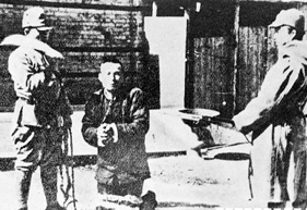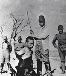 图为南京市民被日军捆绑刺杀(素材来源:新华社)