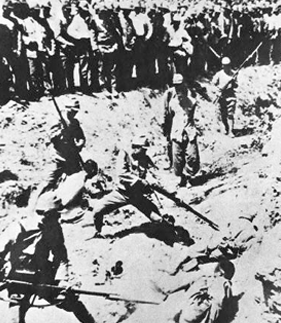 图为日军在南京活埋我同胞(素材来源:新华社)