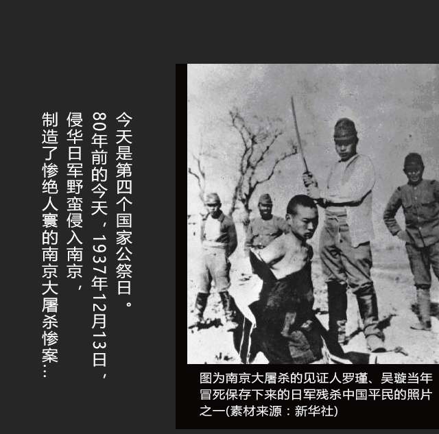 今天,我们为南京大屠杀死难者举行公祭仪式,