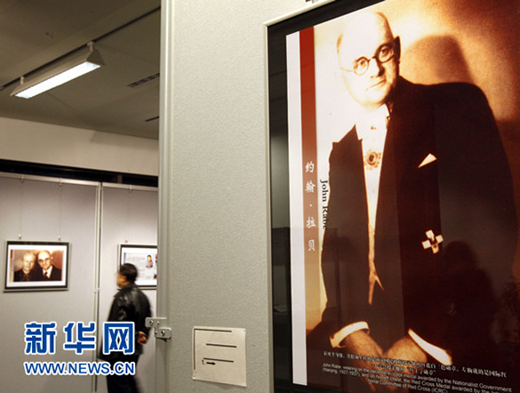 2010年11月12日,参观者在德国柏林中国文化中心观看约翰·拉贝事迹图片展。 新华社记者罗欢欢摄
