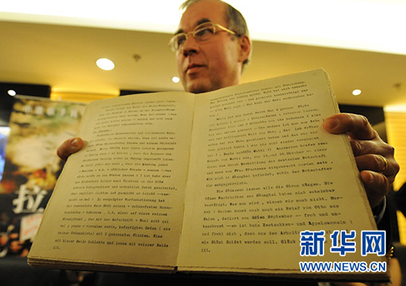 中德合拍历史影片《拉贝日记》2009年4月30日在南京公映。约翰·拉贝的孙子托马斯·拉贝在发布会上展示了约翰·拉贝日记8本原件中的2本。新华社记者 孙参 摄