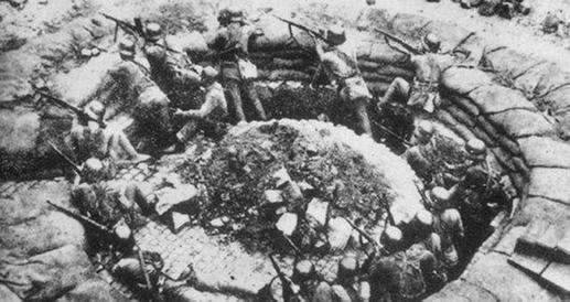 图为淞沪会战期间中国军队88师在上海闸北的环形工事里同日军巷战。