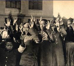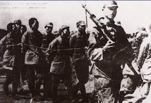 图为日军将被俘的已解除武装的中国军人,用绳捆绑后,押赴郊外集体枪杀。