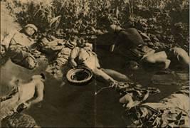 图为血池——南京城郊失去了战斗力的中国军民,被日军反绑双膊枪杀,掷入池中,此池中的尸体达三百余具。