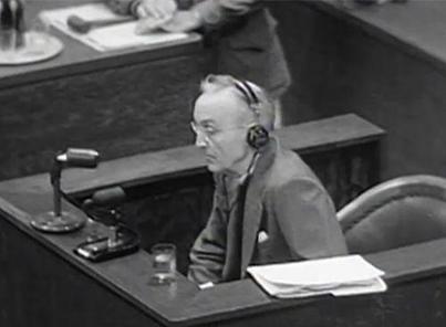 图为约翰·马吉在东京审判的法庭上为南京大屠杀作证。