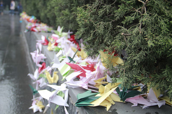 北京101中学的学生们叠的千纸鹤(王越 摄)