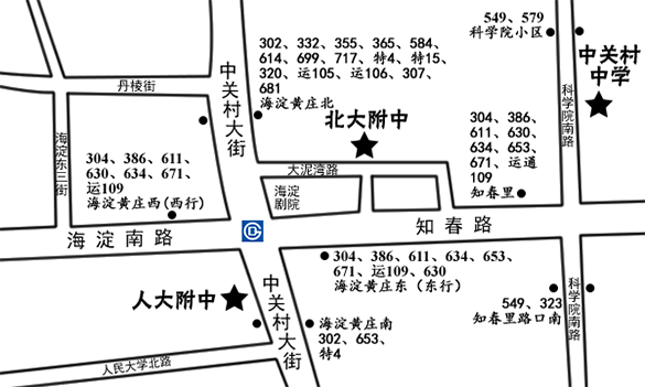 考点校紧临中关村大街,公交线路多,校门外没有停车位,易堵车。
