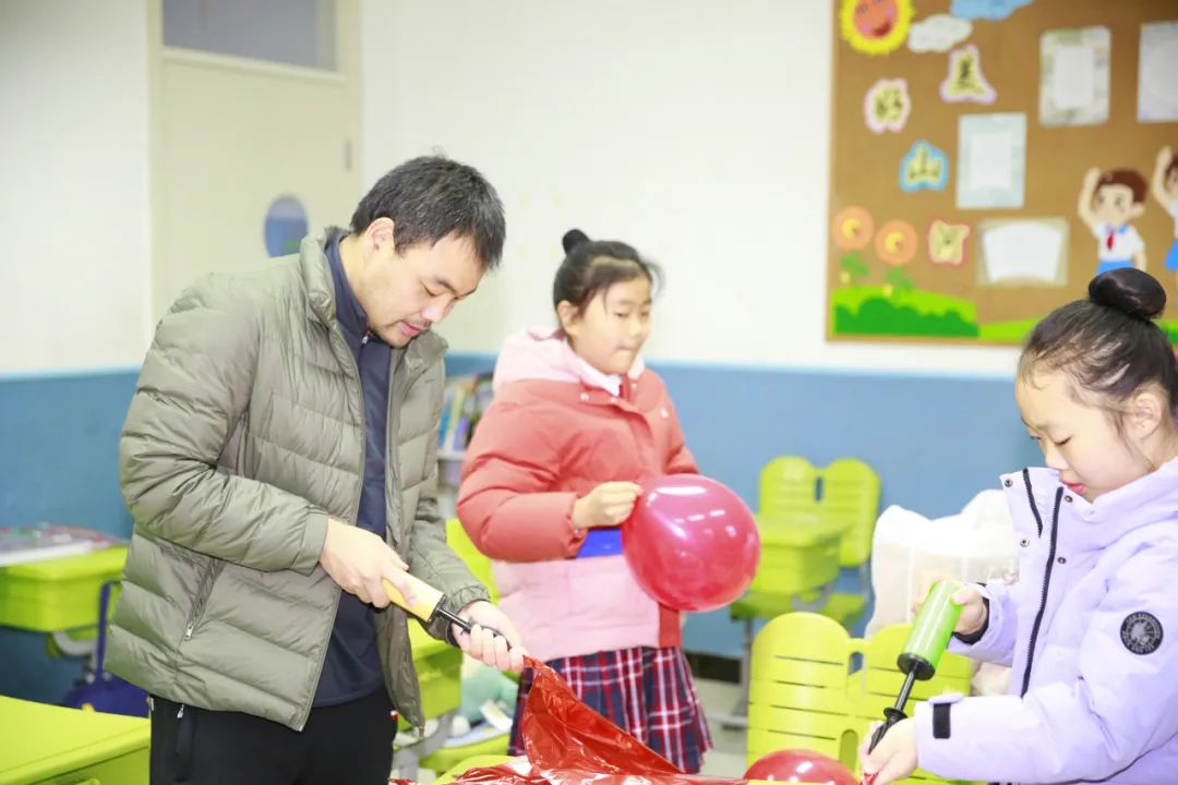 12月29日清晨,校园内张灯结彩,孩子们亲手制作的灯笼在微风中摇曳,成为一道亮丽的风景线,每一间教室在师生及家长志愿者的亲手“打造”下,弥漫出浓郁的新年气氛。