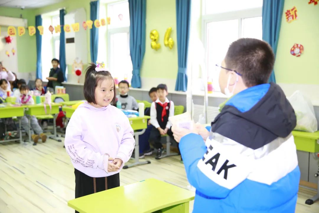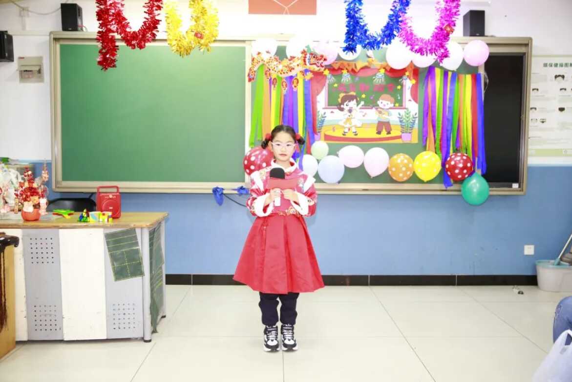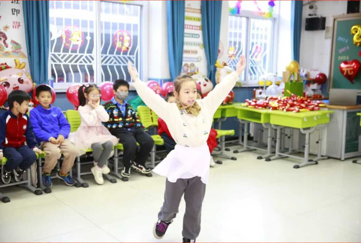 随后,班级联欢正式开启。教室中花如海,歌如潮,欢声笑语,喜气洋洋。虽然室外数九寒天,但教室里师生及家长的热情让现场温暖如春。伴着愉快的音乐,热烈的掌声,各班八仙过海各显神通,舞台上的小主持人有模有样,小演员们也神气十足。节目精彩纷呈,声乐、器乐、舞蹈、朗诵、趣味魔术……孩子们的欢声笑语在宽敞明亮的教室里回荡,稚嫩的脸庞上洋溢着如阳光般灿烂的笑容。金毅校长带领行政领导走进各班教室向老师、孩子及家长们送上了新年祝福。