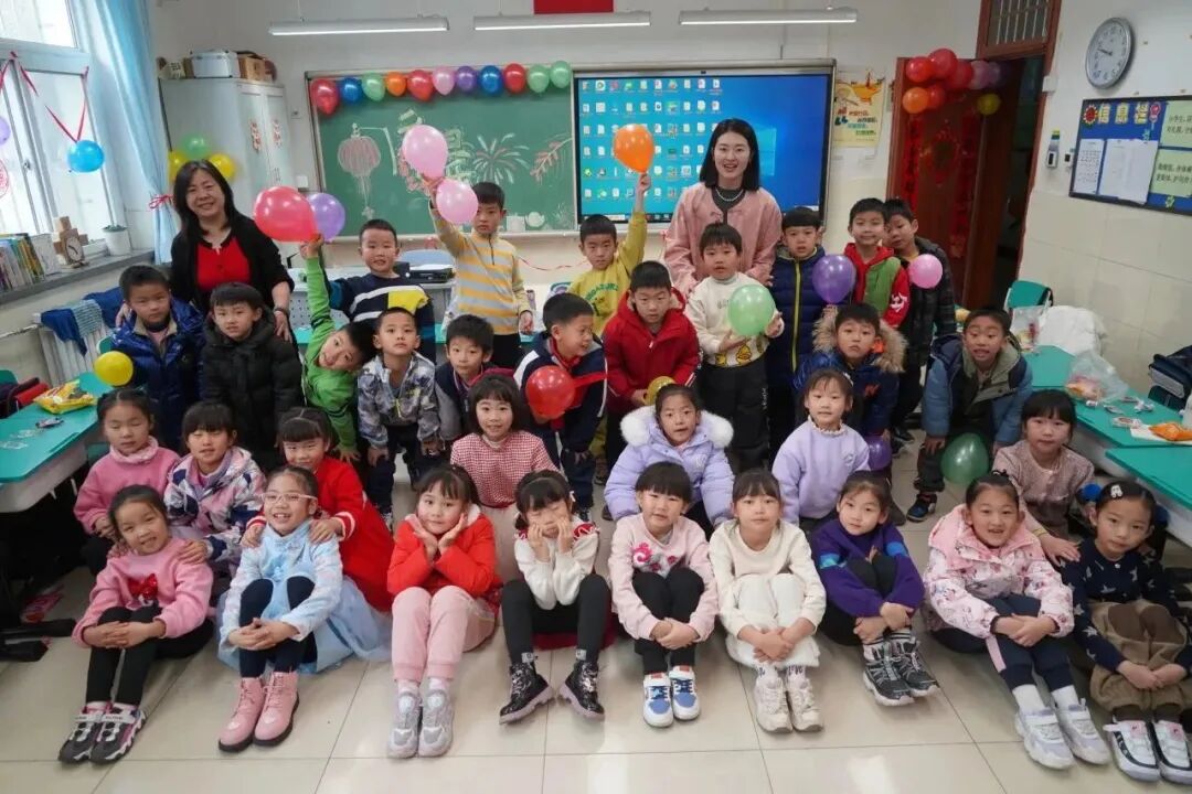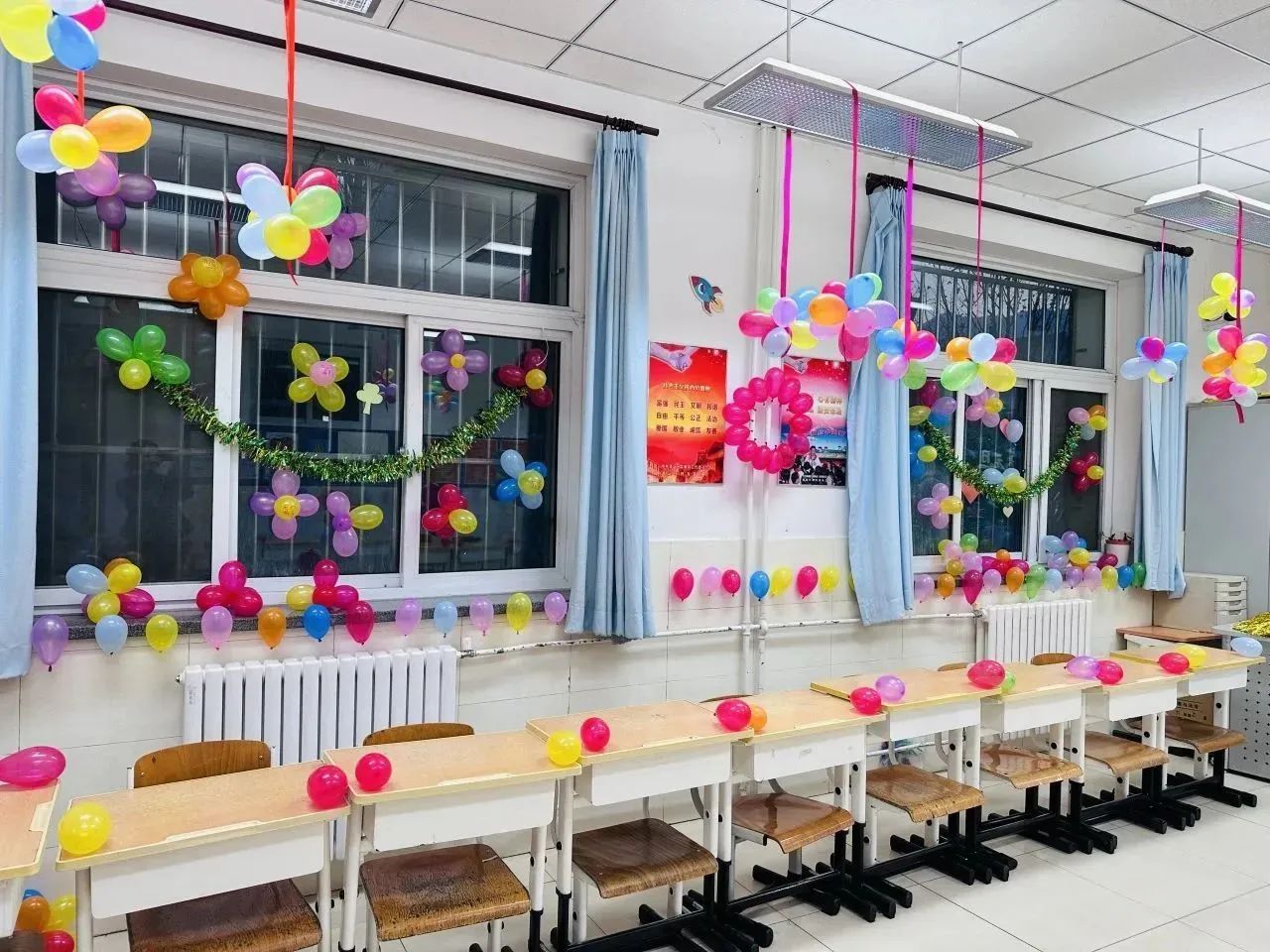 同学们在正副班老师的带领下一起布置着本班教室,有负责画黑板的、吹气球的、还有高个子的同学负责挂彩带,大家分工明确,不一会儿教室就被装饰的漂亮又温馨。