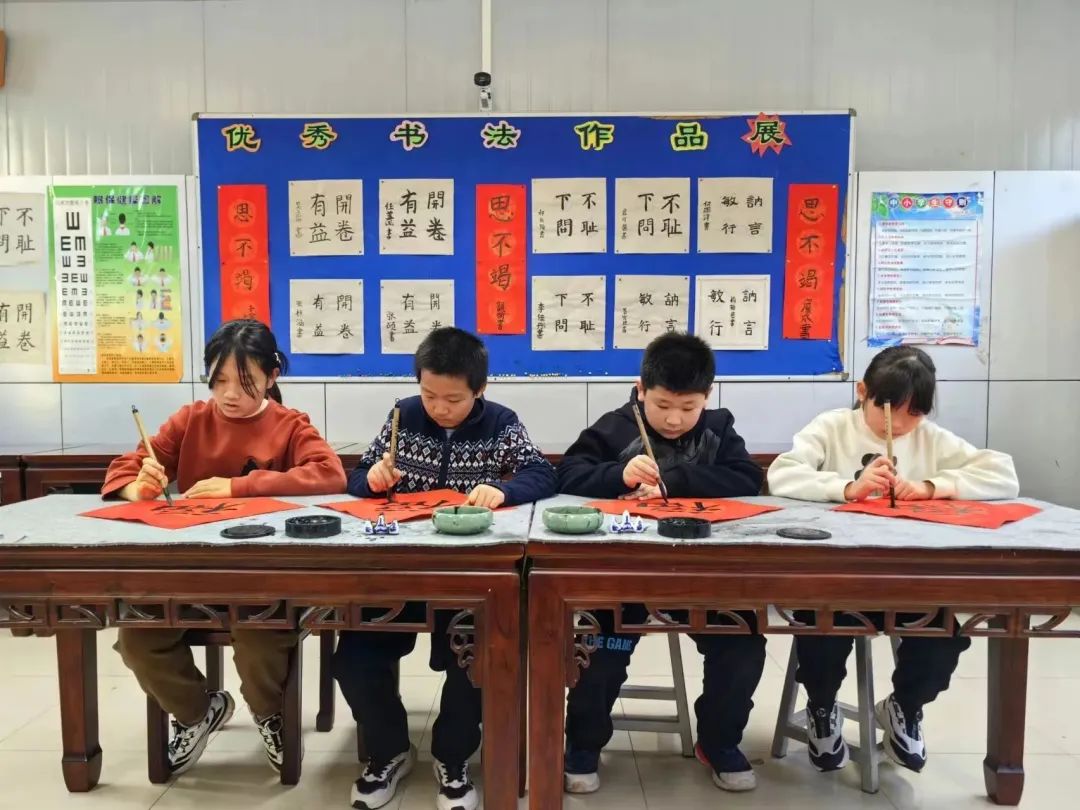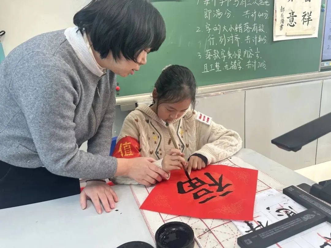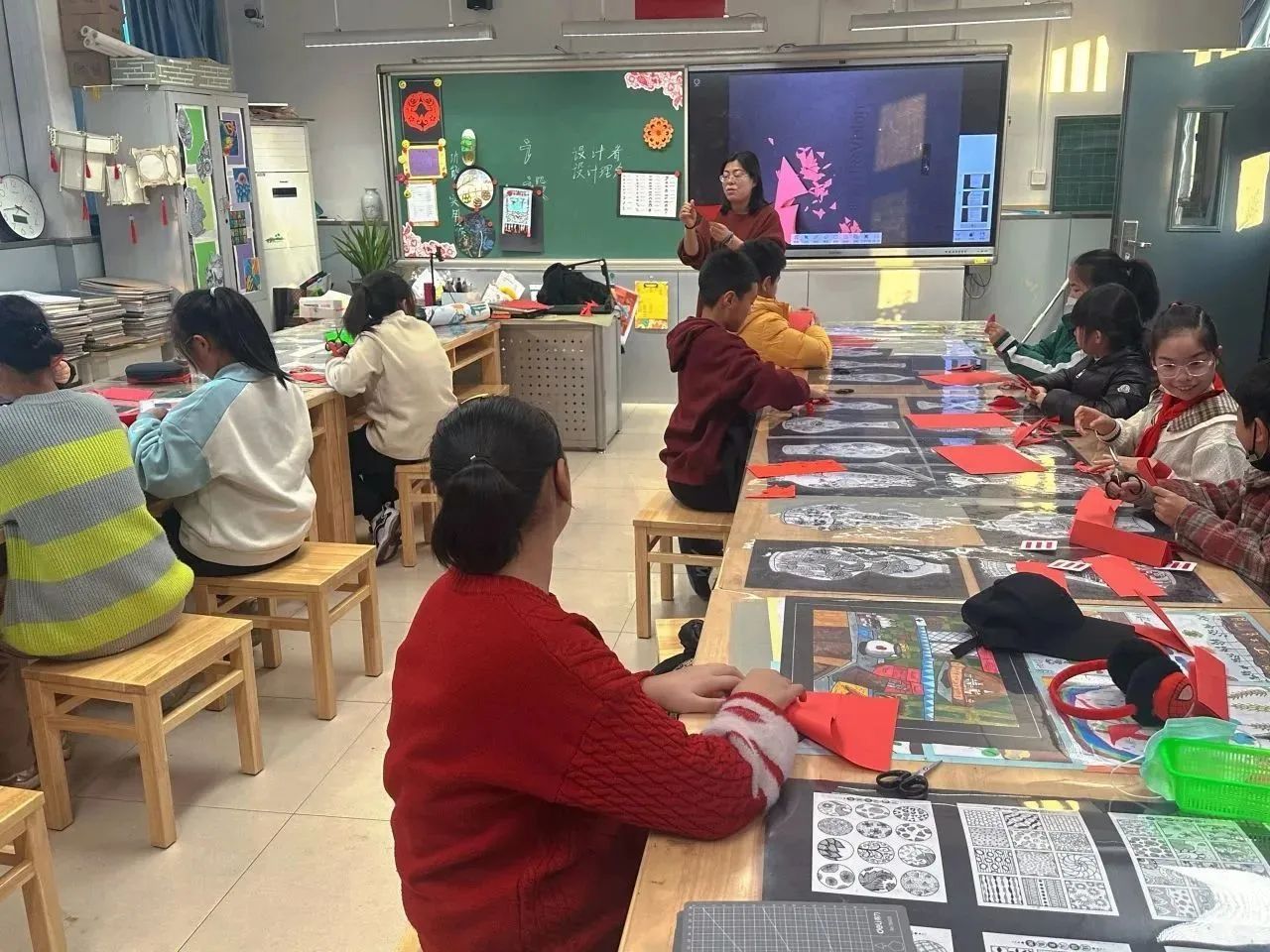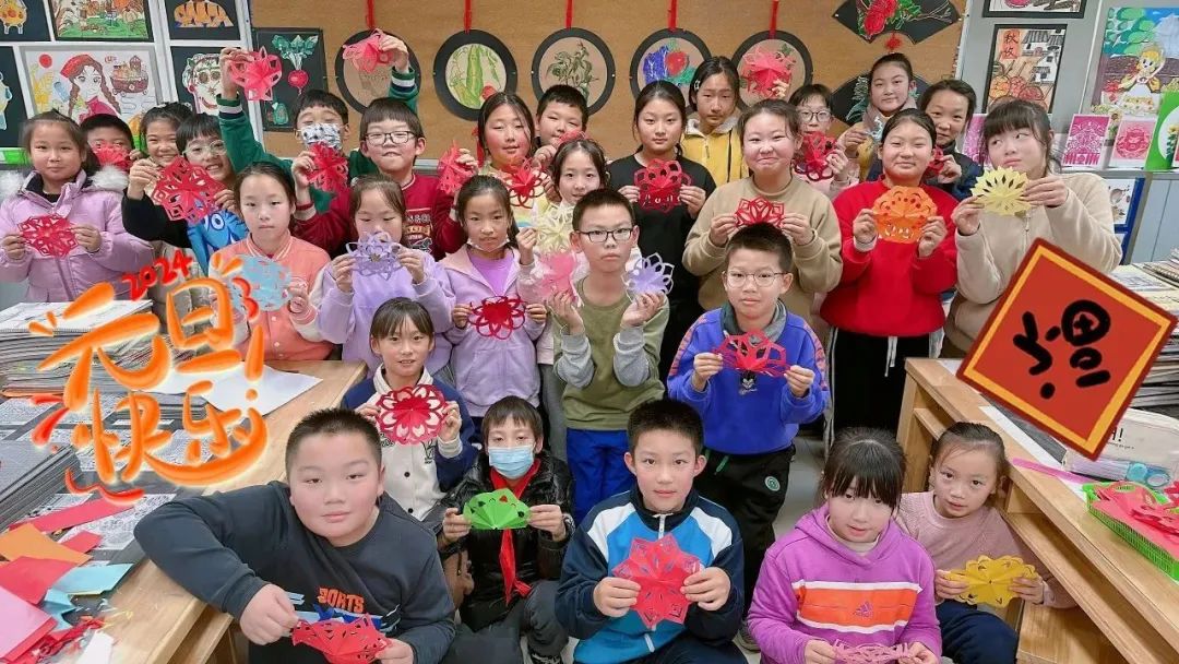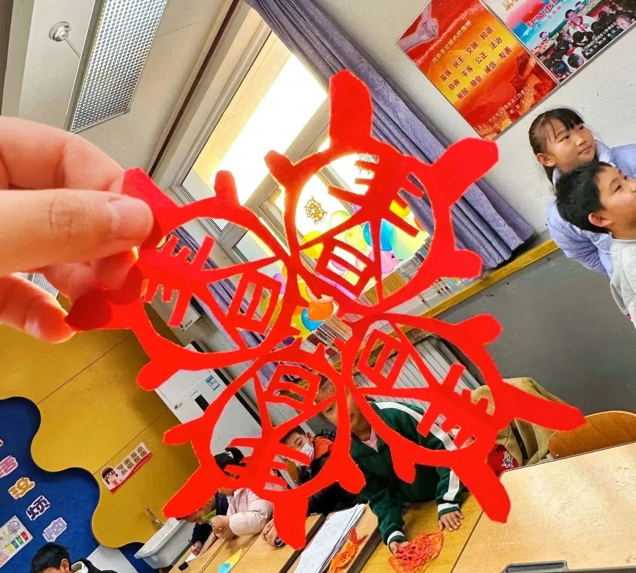 自古以来,剪窗花、写福字都是人们迎新春的一种方式,在窗户上、门上贴上各式各样精美的窗花、福字,用来渲染新年的氛围,寄托大家辞旧迎新、接福纳祥的新年愿望。在节日前,美术老师和书法老师带领着孩子们一起剪窗花、写福字。一把剪刀、一张红纸、一支毛笔,为教室增添了一抹喜庆的“中国红”!