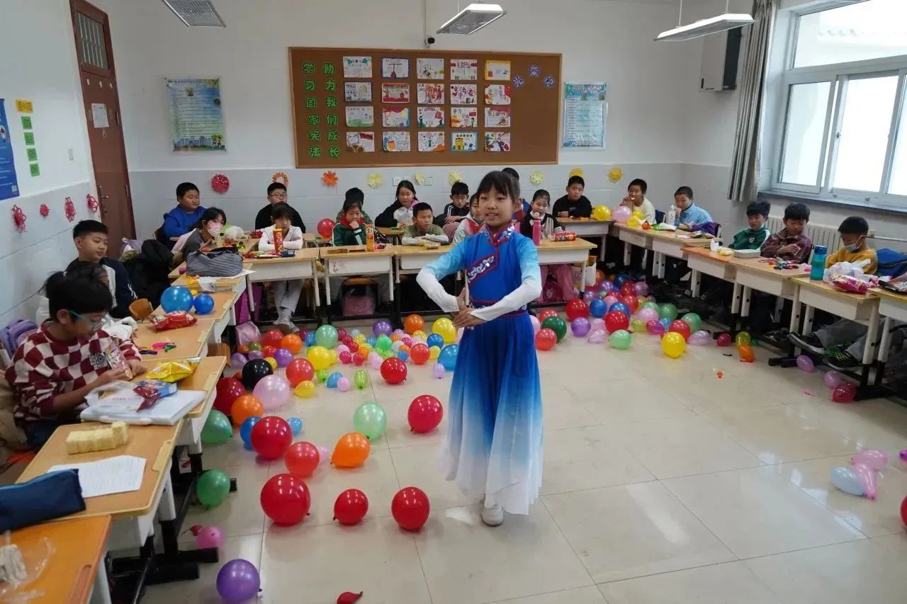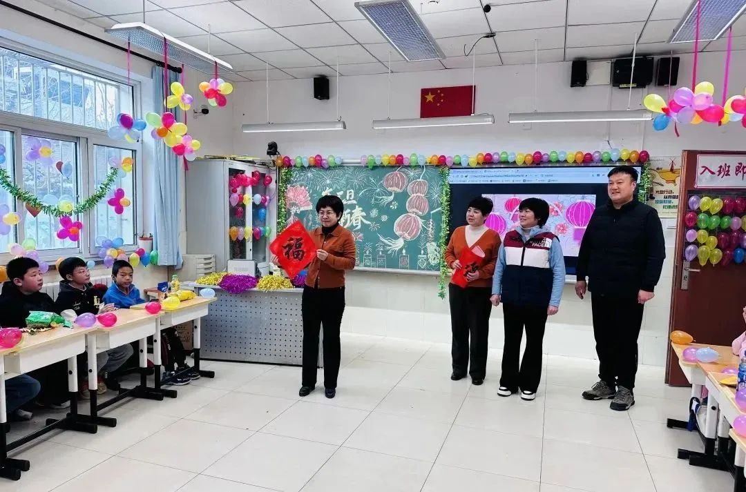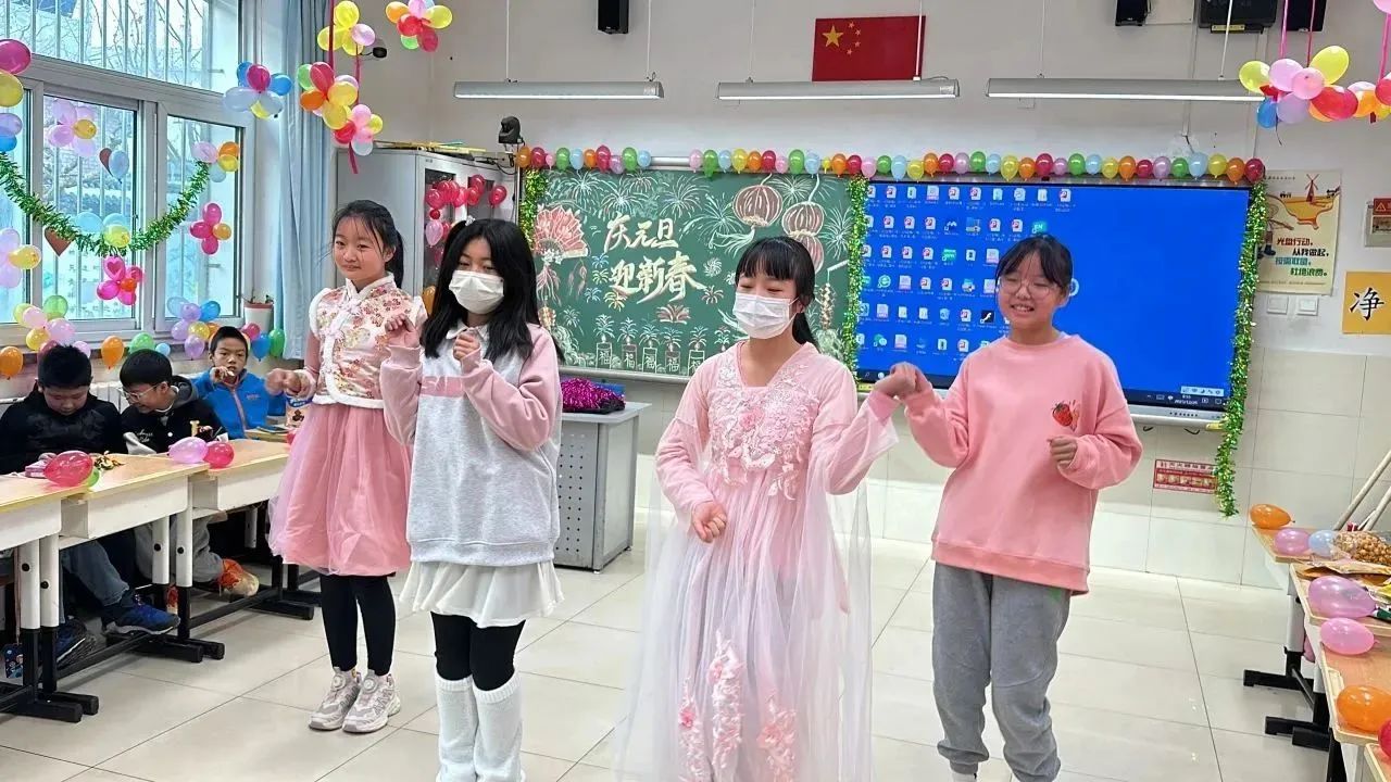 学校的领导们走进各个年级,参与同学们的活动,为大家送上新年的祝福。我们的大队干部代表也给同学们带来了惊喜,节奏欢快的快板表演,温婉柔美的蒙古舞令在场观众拍手叫绝。