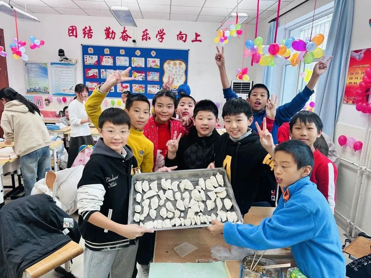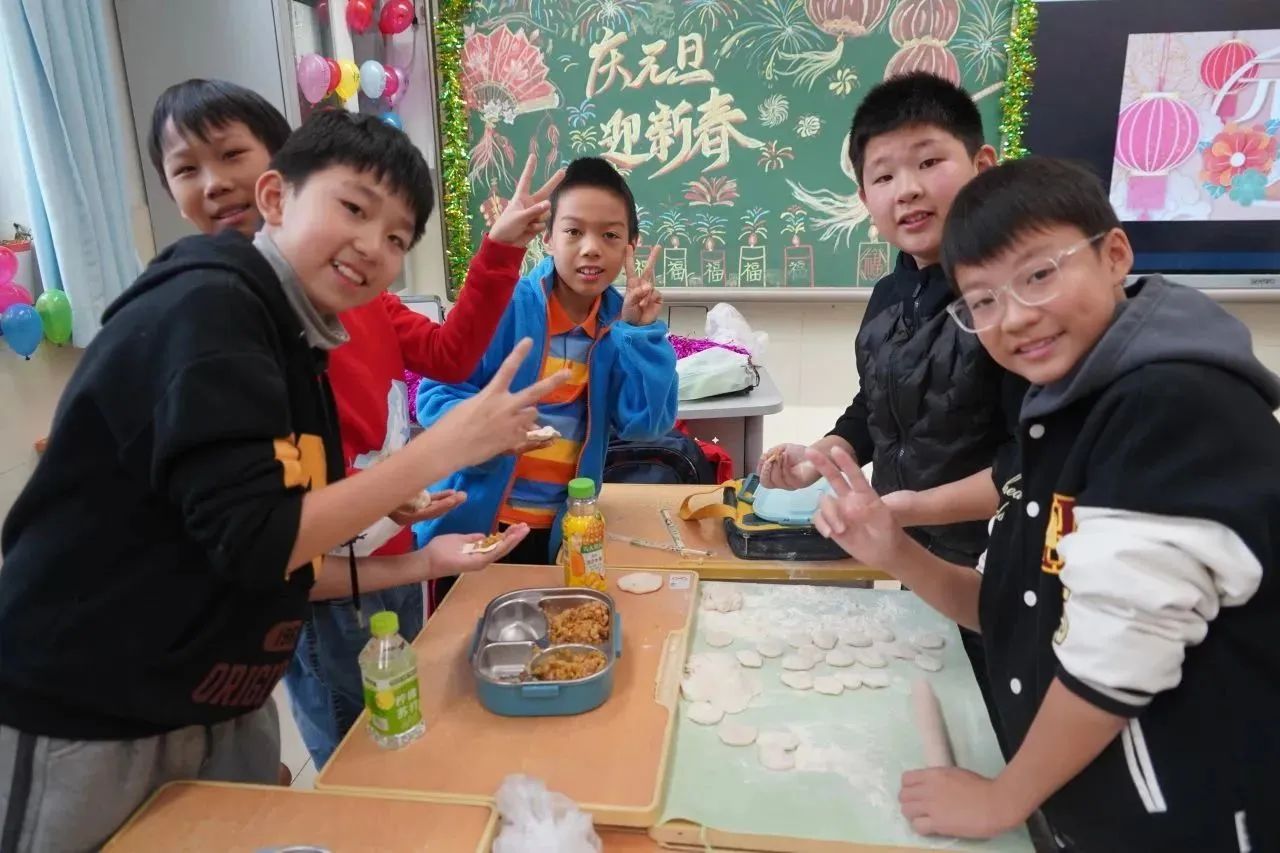 新年吃饺子是中国很多地区的民俗,饺子有新旧交替、秉承上苍之意。六年级的同学们在老师的带领下一起包起了饺子。他们有的擀皮、有的拌馅儿、有的捏饺子、有的包元宝,整个教室充满了欢声笑语!