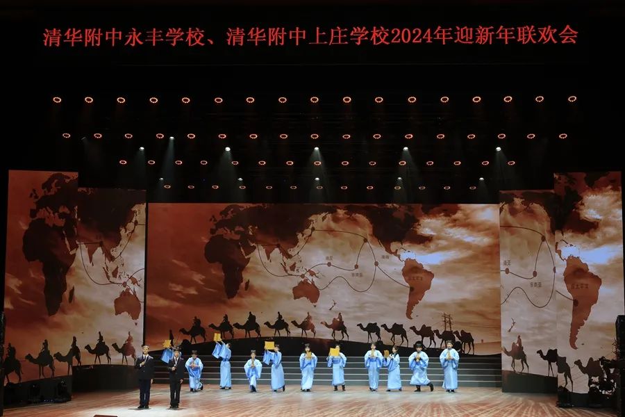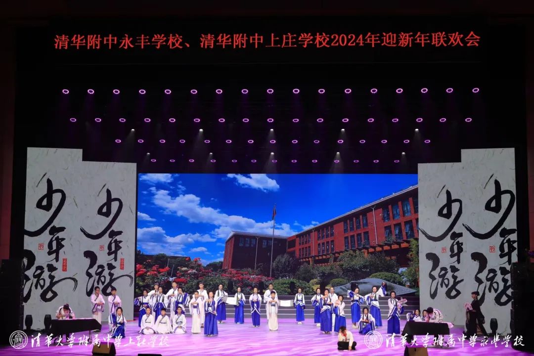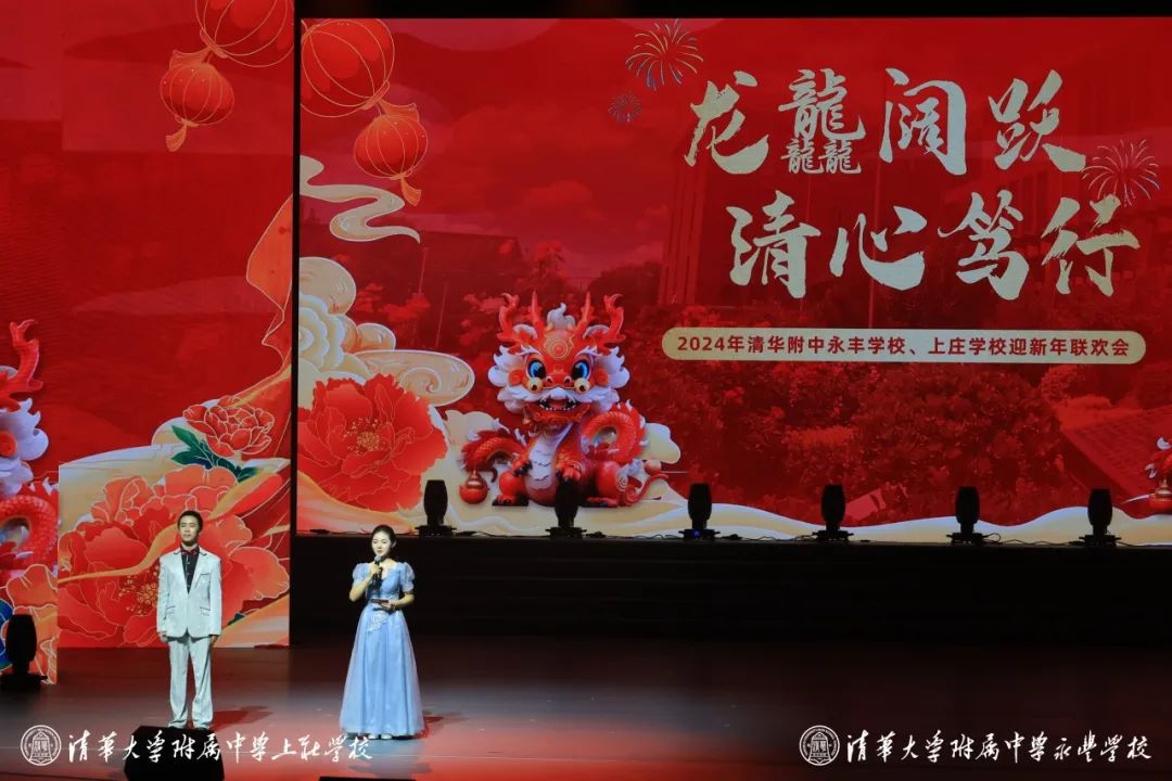 为给更多的学生以更广阔的自我展示的平台,帮助学生提升综合素质,实现个人价值,在2024年农历甲辰龙年即将到来之际,清华附中永丰学校、上庄学校两校于2023年12月28日在清华大学“新清华学堂”举办了盛大的“龙龘阔跃 清心笃行”2024年迎新年元旦联欢会。