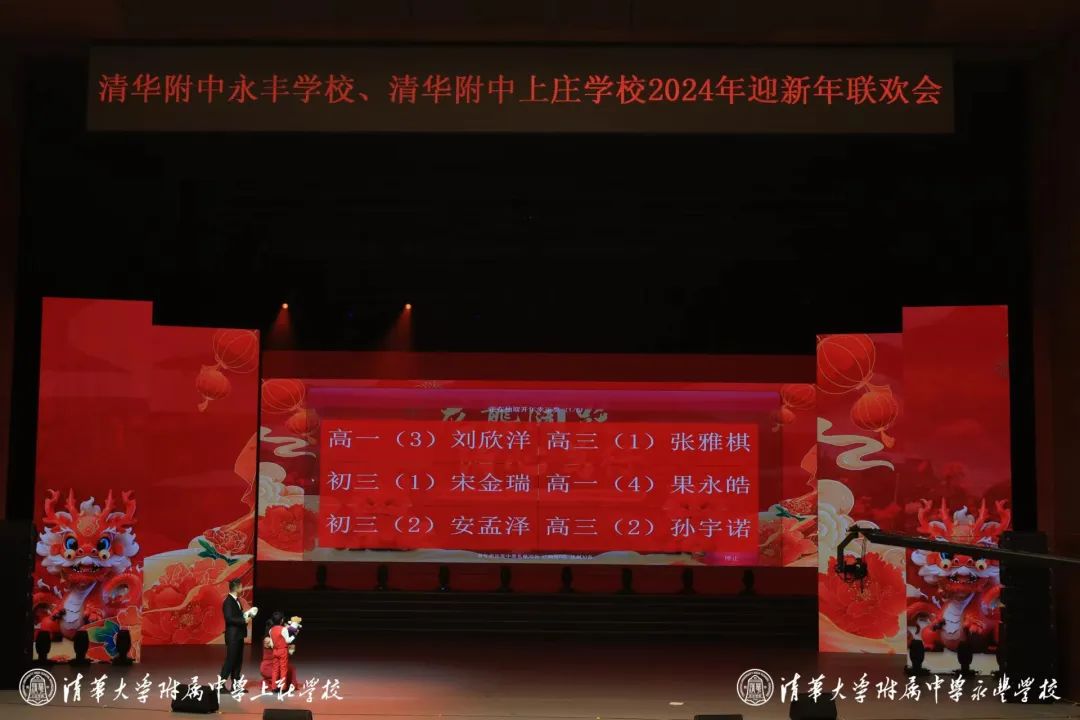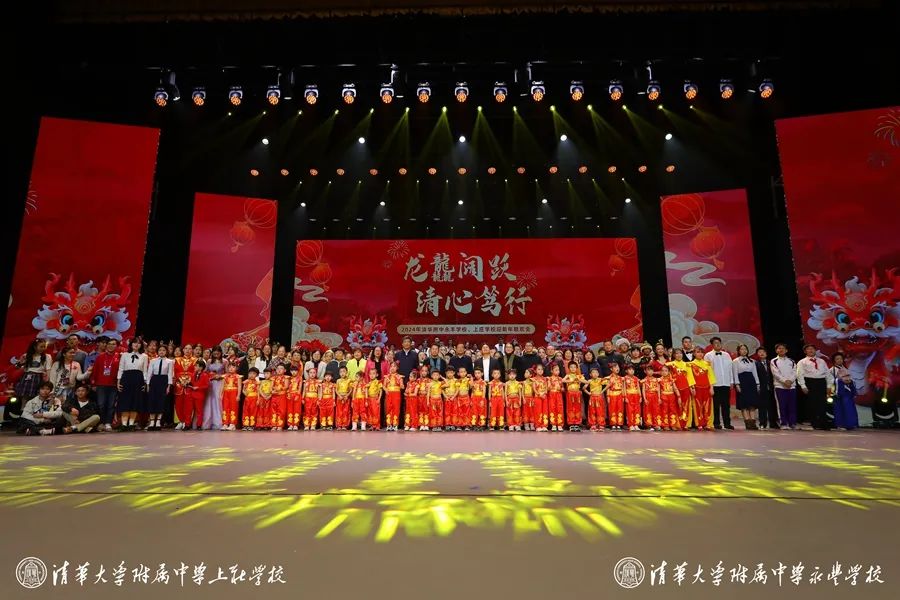 辞暮尔尔,烟火年年,龙行龘龘,硕果累累。学校的发展离不开各部门的同心助力,正是在学校领导的统筹指导下,在学生发展中心的组织协调下,在学校办公室、安保部门、教学部门、信息中心、宣传中心、后勤部门、体育组等各个部门的通力合作下,加上台前幕后演职员和志愿者们的辛苦付出、协调配合,才有了这次盛会。这次联欢会既是清华附中永丰学校、上庄学校两校首次联袂出演,也是两校首次在清华大学“新清华学堂”共襄盛举,更是两校深耕集团化办学、优质均衡办学发展路上的里程碑。