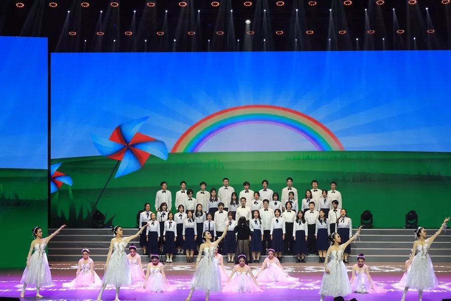 清风朗月添锦绣,华夏龙腾显雄风;龙盘校园书声起,青春热血铸蓝图。舞台上的精彩演绎,师生们积极向上的精神风貌,使观众席上掌声、欢呼声、节拍声频频响起。最后,十位主持人一起走到舞台中央,与台上台下的领导、嘉宾、师生和家长们共同唱响歌曲《我和我的祖国》。台上台下情相近、心相通——声声合唱,唱出对祖国的殷殷祝福,唱出对学校发展的美好祝愿,唱出青春的快乐,唱出明天的美好。
