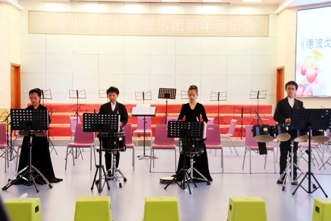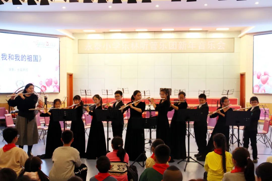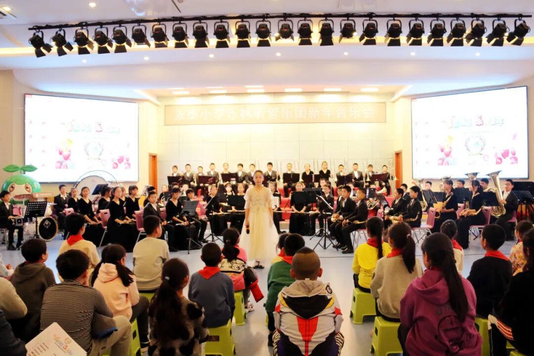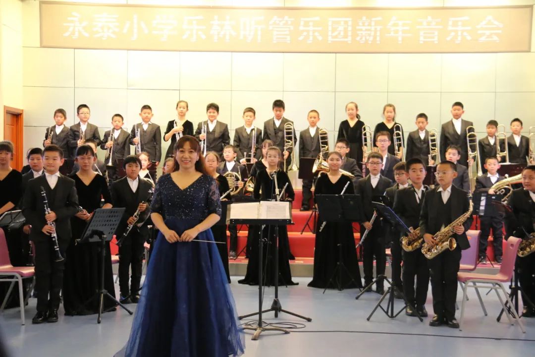玉兔欢歌辞旧岁,金龙起舞迎新年。12月28日,永泰小学三层大厅召开管乐团新年音乐会,参加音乐会的嘉宾有永泰小学刘京丽校长、学校管乐团特聘指挥朱芃老师、学校干部教师以及管乐团指导教师团队。两校区一至六年级同学,管乐团的家长们线上观看演出。