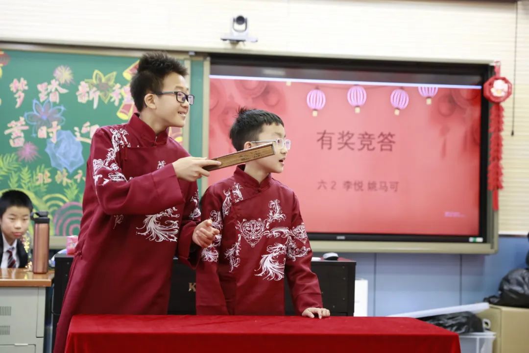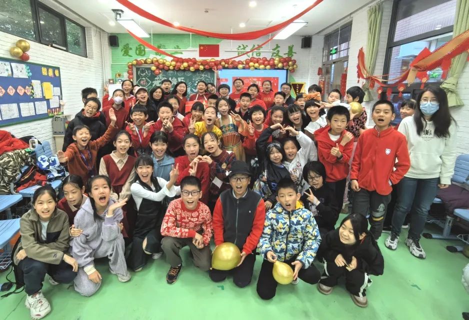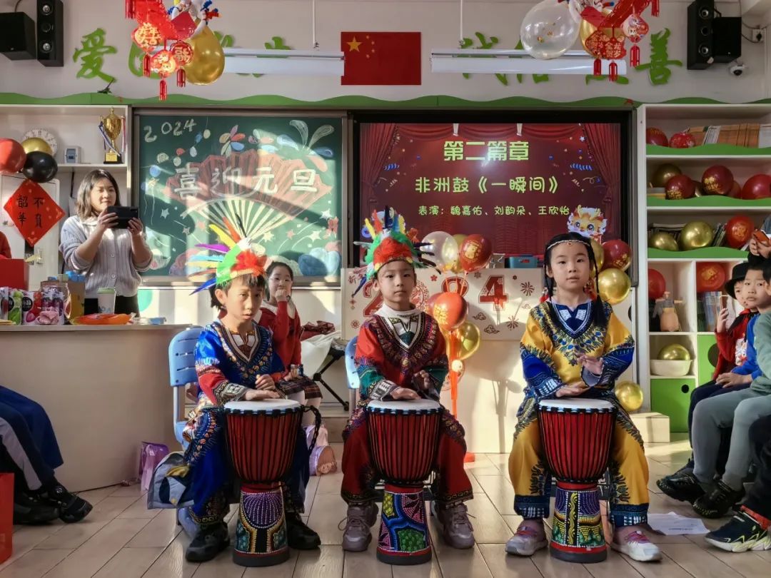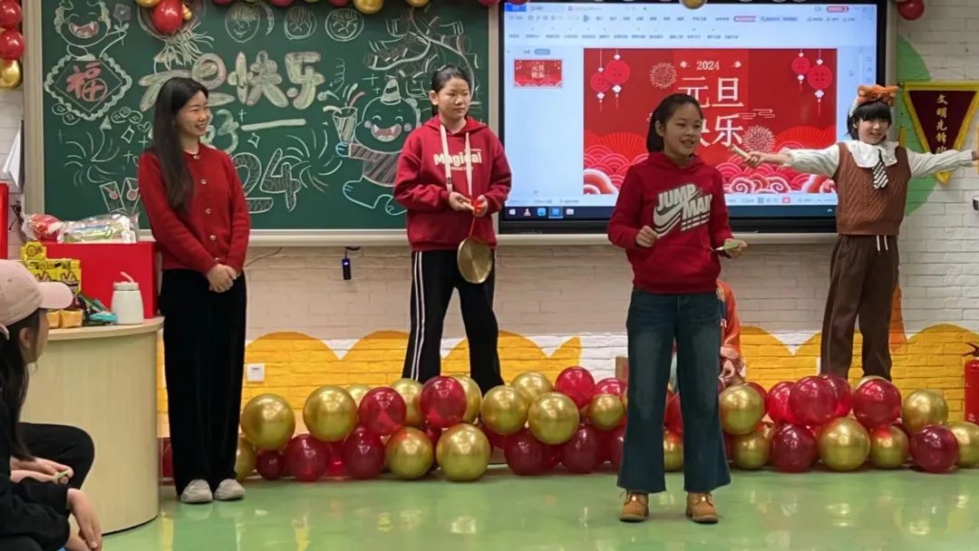在班级联欢会上,孩子们穿着最漂亮的服装,表演最拿手的节目。动人的歌声、曼妙的舞姿、幽默的相声、诙谐的小品等,犹如一场盛大的视听盛宴在个个班级里同步上演。更有趣味十足的猜词游戏、盲盒抽奖、美食品鉴等活动掀起一阵阵快乐的浪潮.....校园处处洋溢着喜庆的氛围。