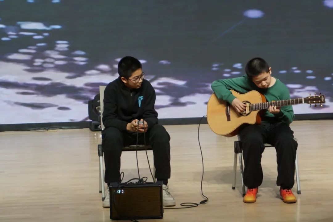 为了落实“双减”课后服务政策,我校积极开设课后兴趣课程,满足学生艺术学习的需求。尽管学习时间短暂,但京剧《梨花颂》,贯口《十道黑》,舞蹈《打铁舞》,武术《少年强》,还有吉他独奏《UNRVEL》