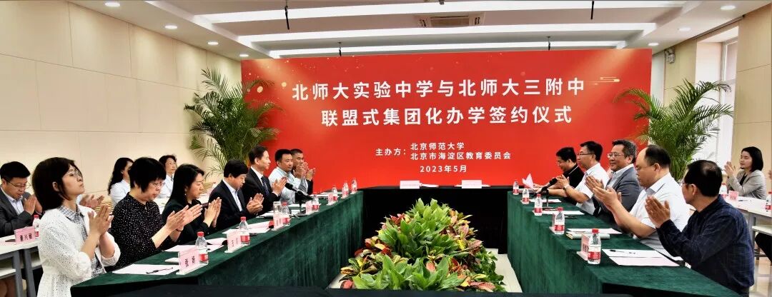 在北京师范大学、海淀区教育两委领导的见证下,北师大实验中学校长李晓辉和北师大三附中校长白计明签署了合作办学协议,两校由此开启了为期6年的联盟式集团化办学的实践探索之路。