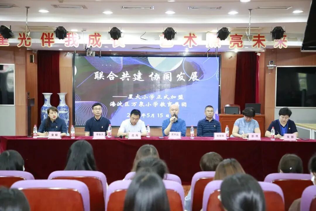 本学期以来,星火小学和万泉小学双方已经就课程资源共享、教师队伍建设等方面进行了多次研讨交流,并达成了“联合共建 协同发展”的共识。作为万泉小学教育集团内第一家独立建制的成员校,星火小学加入万泉小学教育集团的大家庭后,双方将继续凝心聚力,努力推动万泉·星火教育联盟持续健康快速发展。
